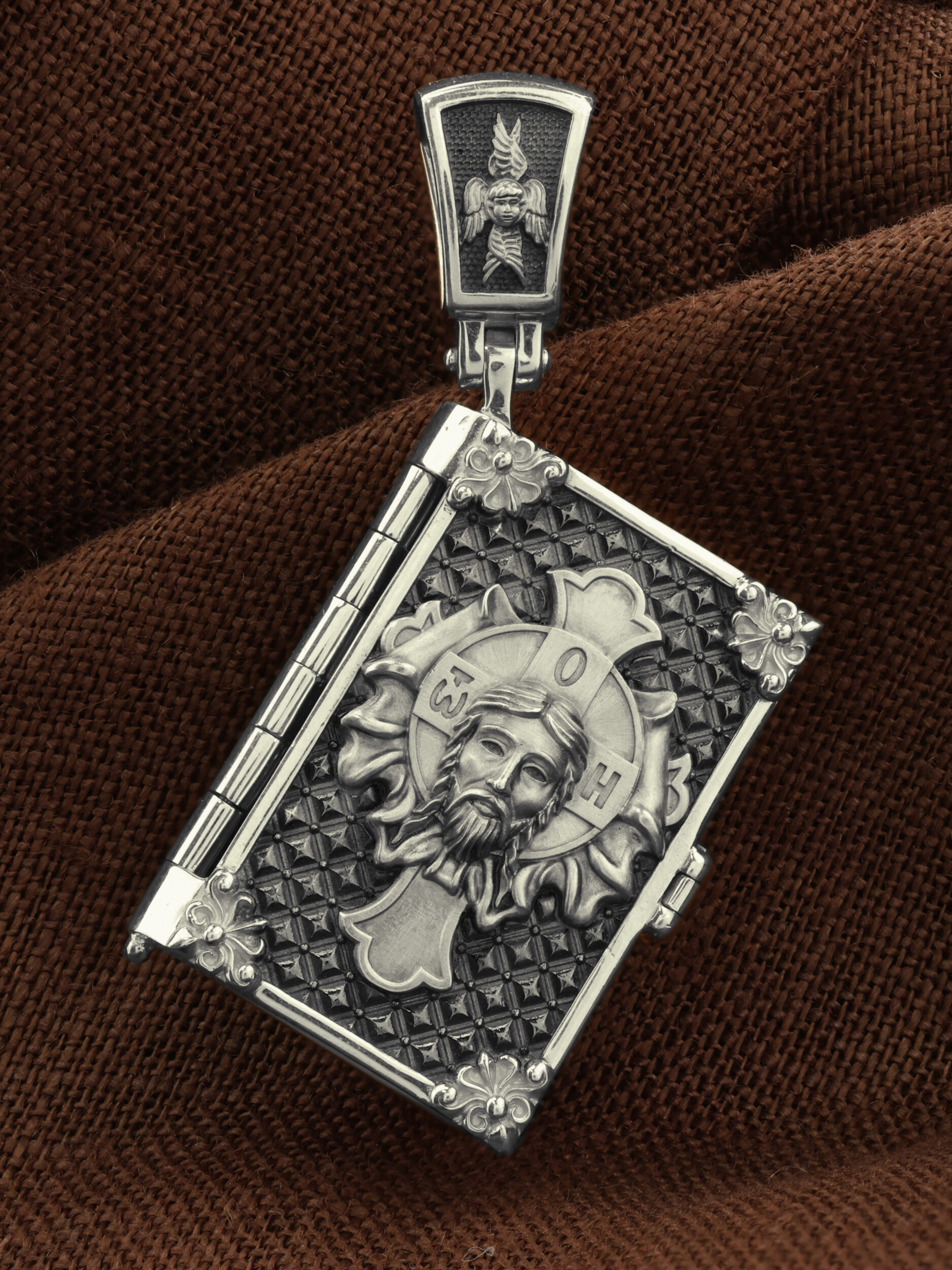 Лицевую сторону складня занимает образ Спасителя «Спас Нерукотворный», который Он запечатлел на плате и передал для исцеления больному проказой царю Эдессы.