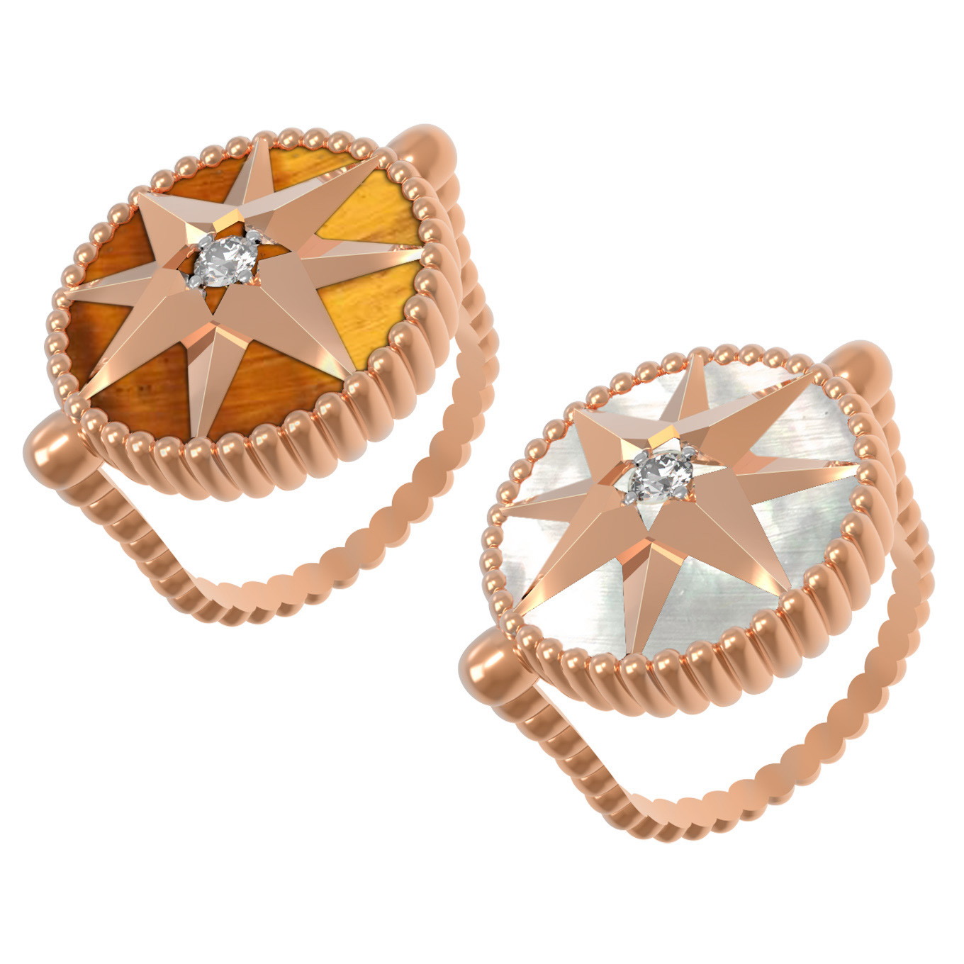 Кольцо из золота c фианитом, тигровым глазом и перламутром