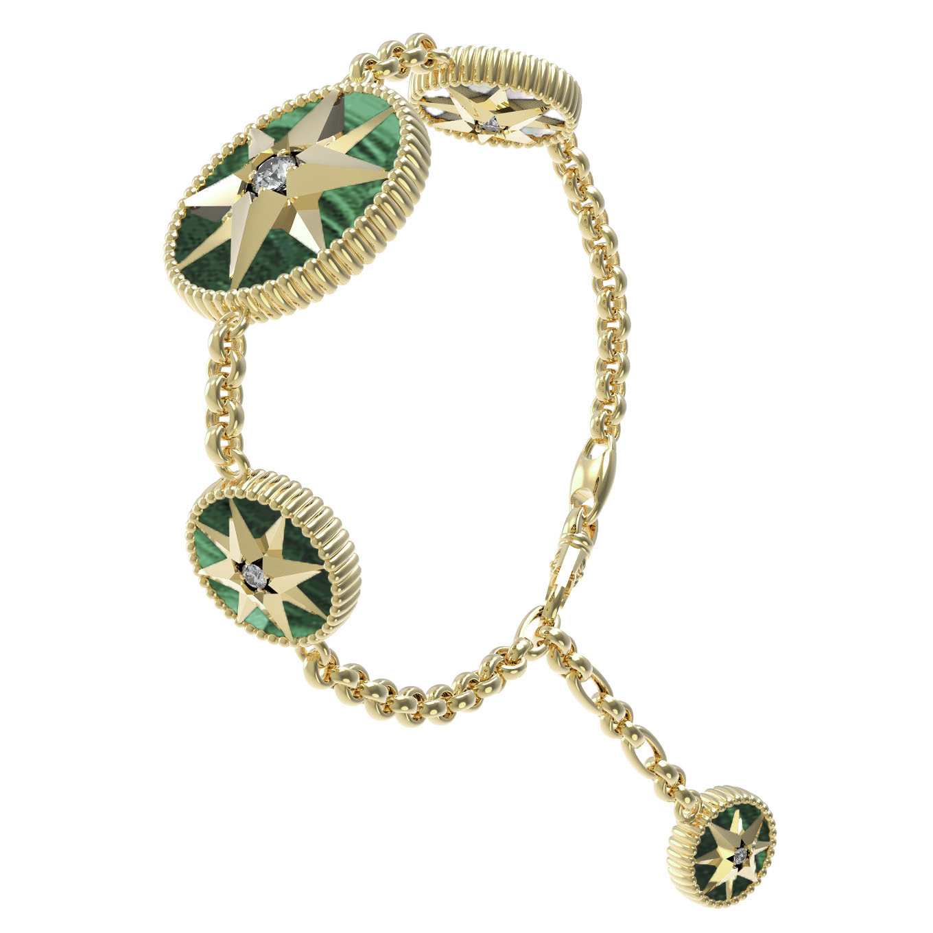 Браслет из лимонного золота c фианитом, малахитом и перламутром