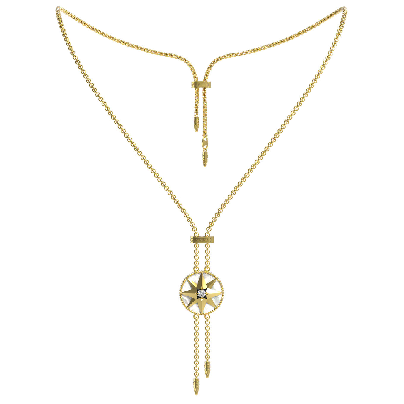 Колье из лимонного золота c фианитом, малахитом и перламутром