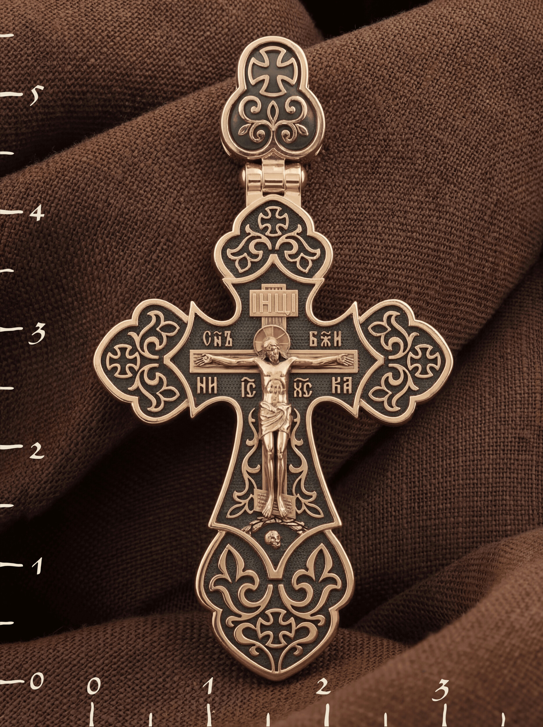 Крест с рельефным изображением Распятия в окружении пышных цветов и ажурного узора, напоминает нам о красоте Райского сада. Такой крест вводит мотив процветшего креста и ассоциируется с образом райского Древа Жизни. Как через древо познания пришла смерть, так через Крест Христа — «Древо Жизни» — даровано спасение.