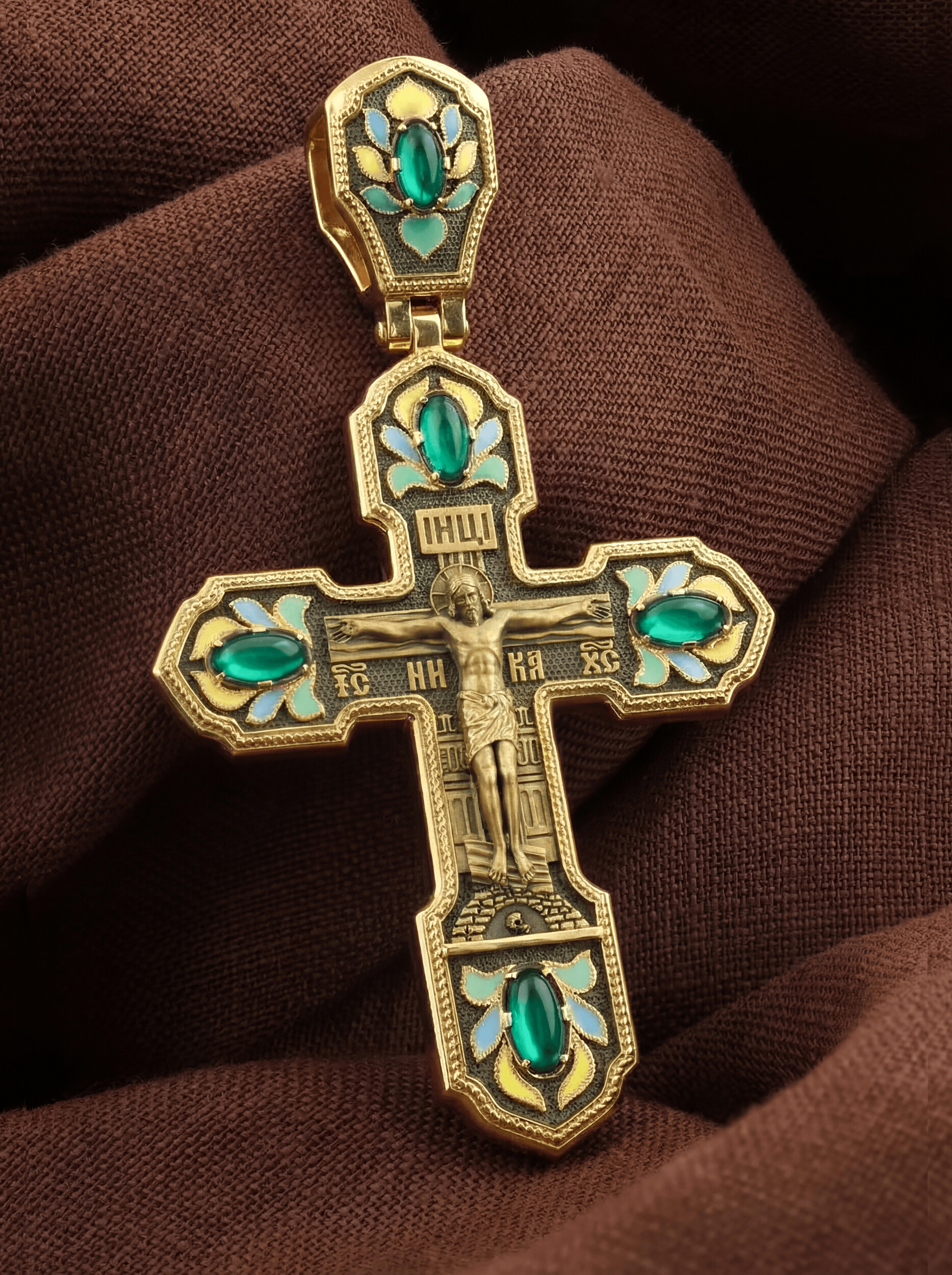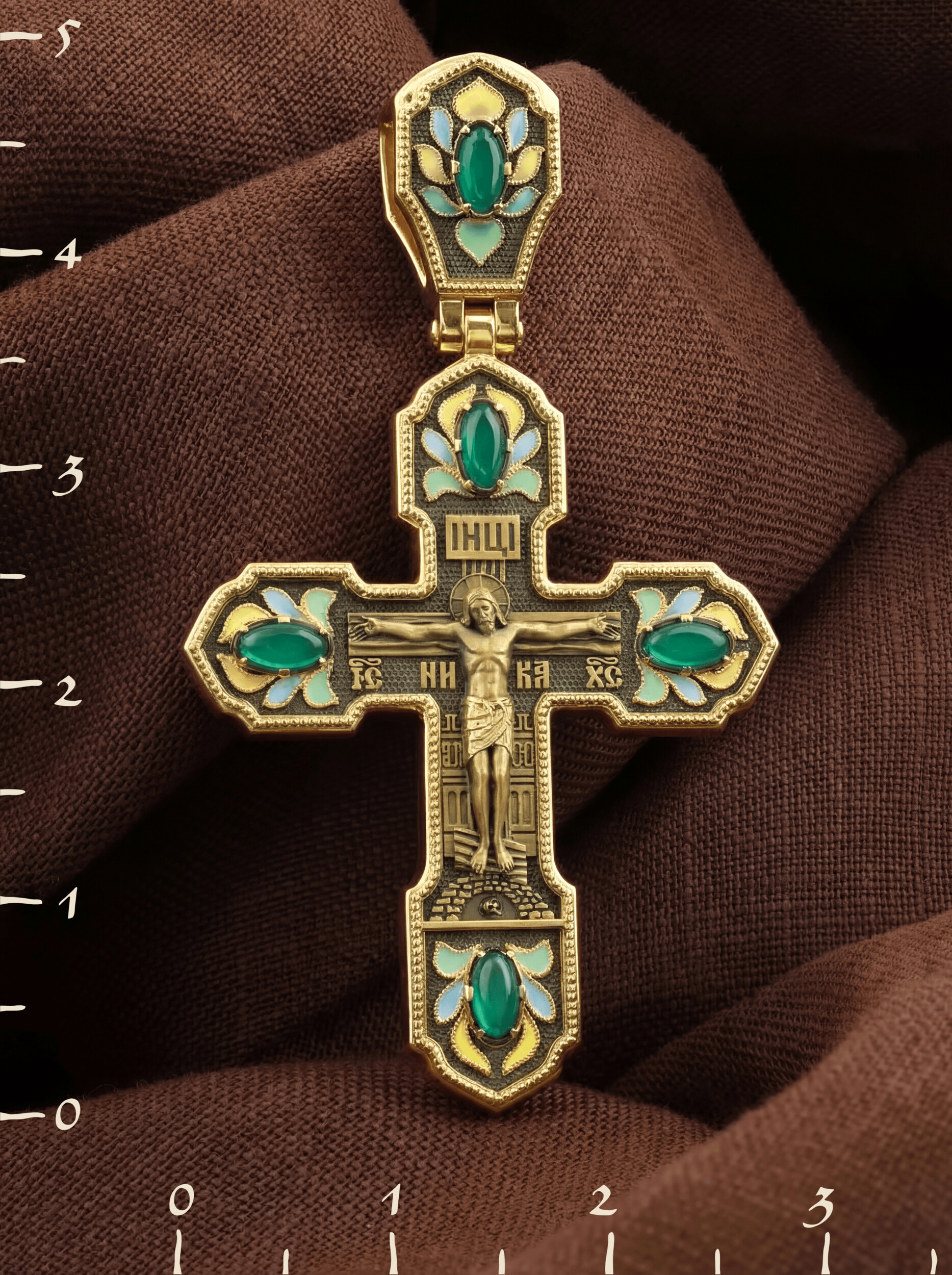 Крест из лимонного золота c эмаль и хризопразом