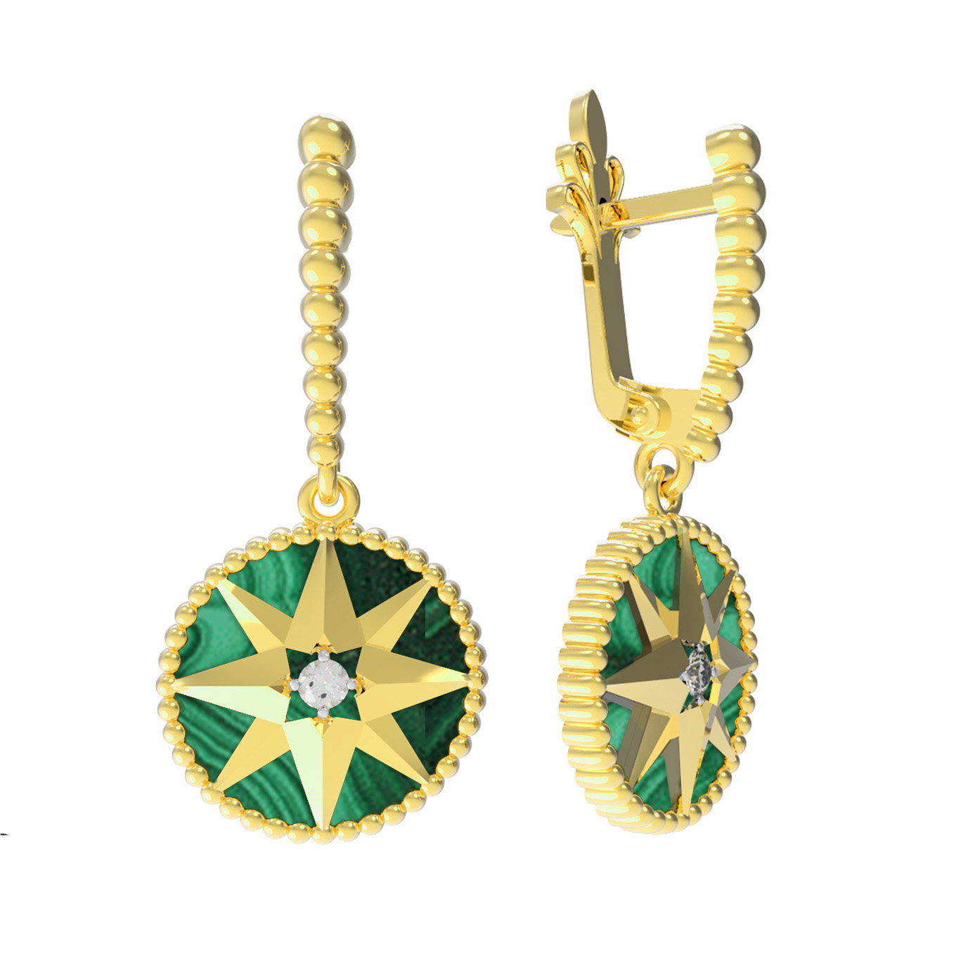 Серьги из лимонного золота c фианитом и малахитом
