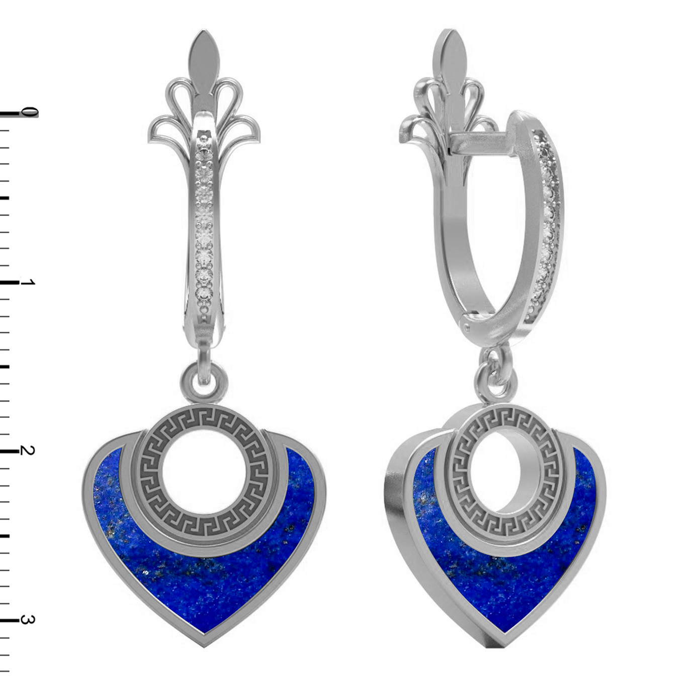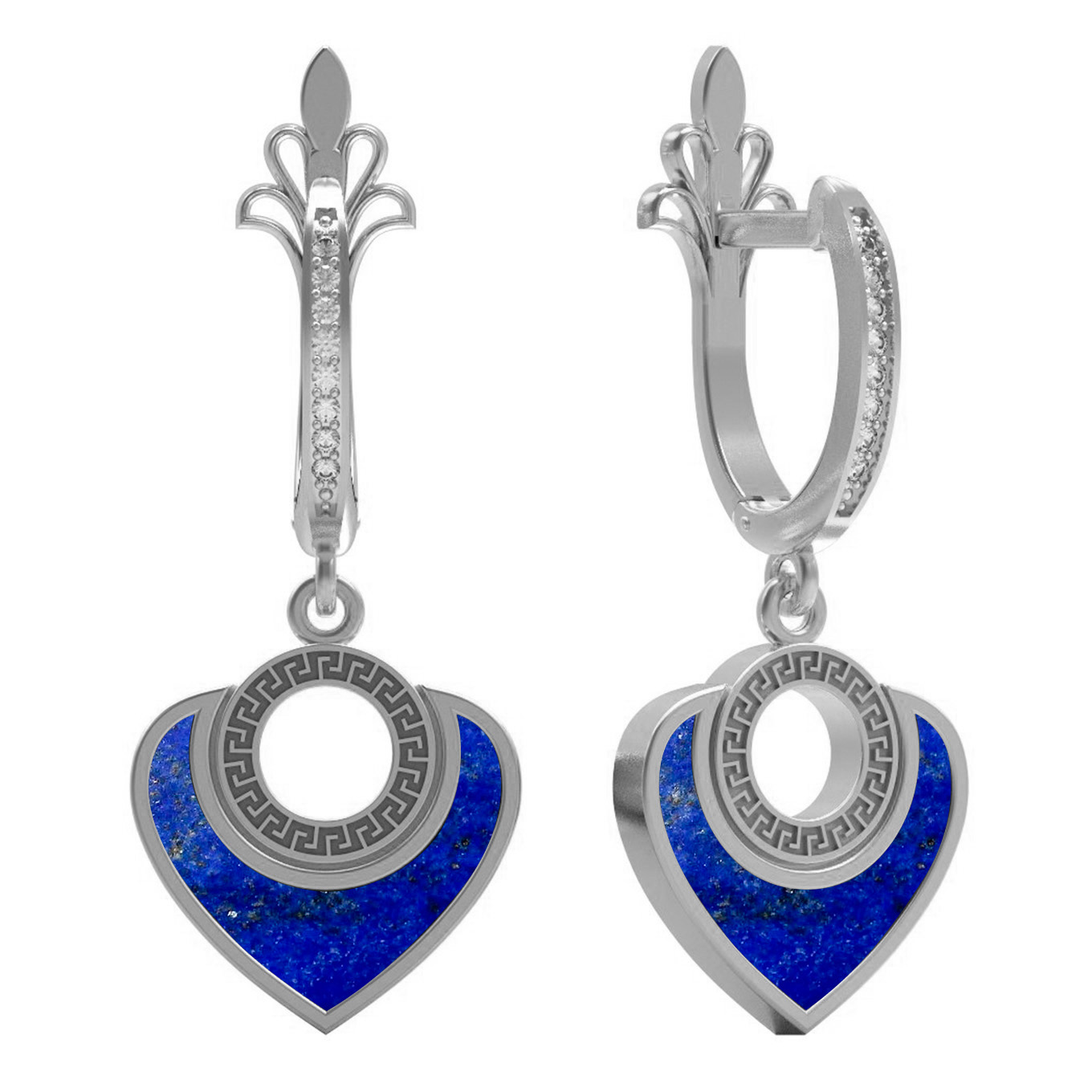 • Серьги из белого золота c фианитом и лазуритом