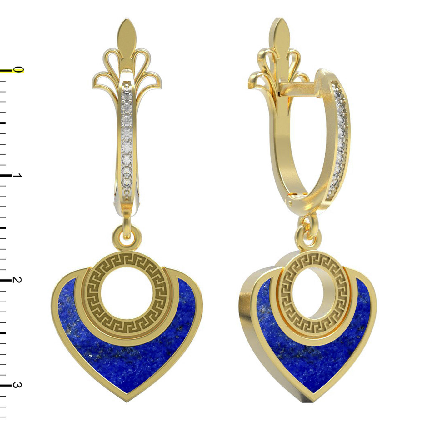 • Серьги из лимонного золота c фианитом и лазуритом