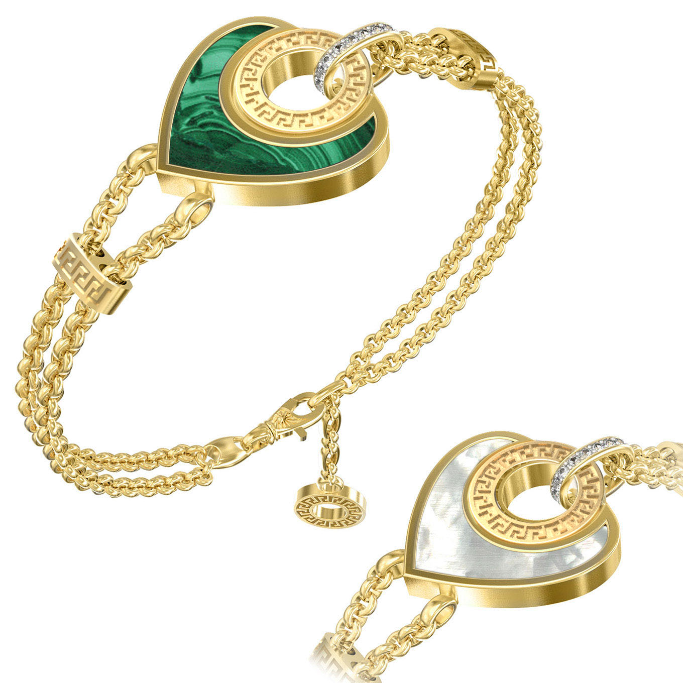 • Браслет из лимонного золота c фианитом, малахитом и перламутром