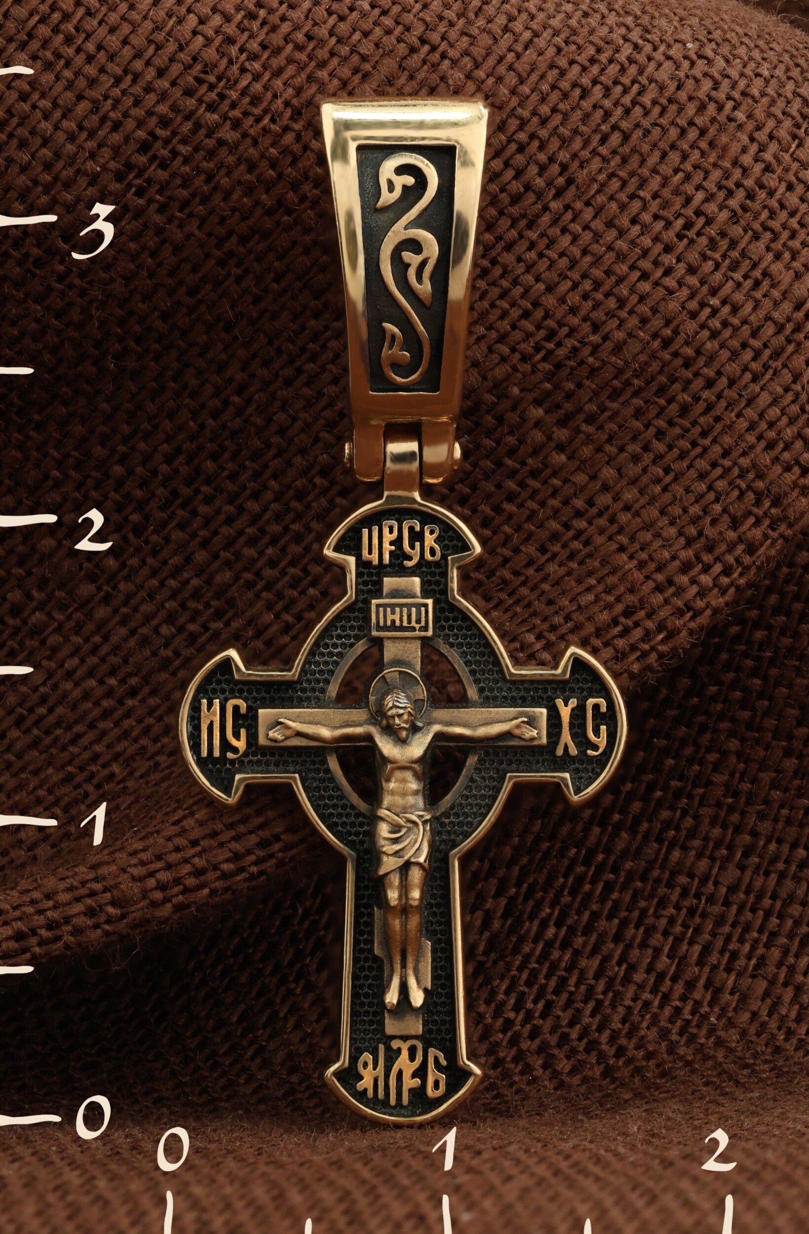 Оборотная сторона креста украшена растительным орнаментом. Помещенный на крест орнамент символизирует жизнедательную силу, животворное тепло креста. В растительный узор, на горизонтальной перекладине, вписано молитвенное славословие: «Спаси и сохрани». Эта надпись означает непрерывную молитву, совершаемую носителем данного креста.