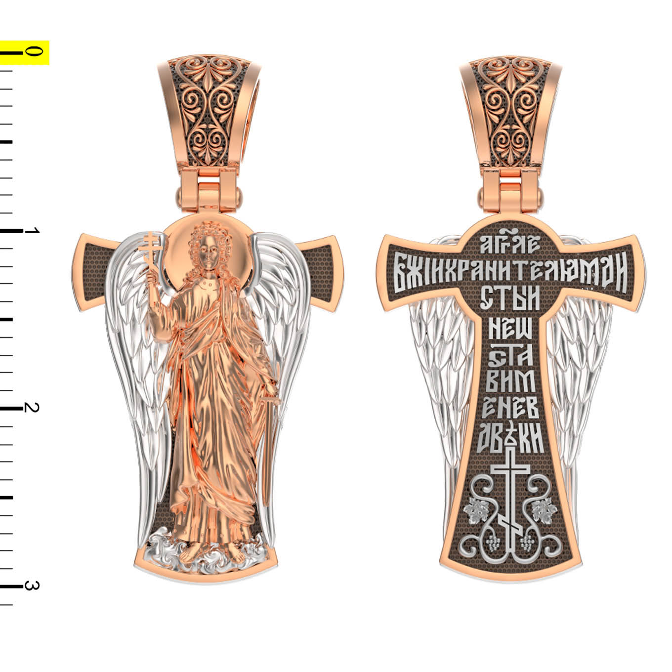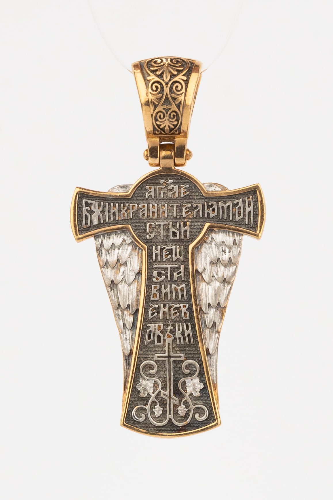 На оборотной стороне креста написана молитва: «Ангеле Божий, хранителю мой святый, не остави мене во веки».