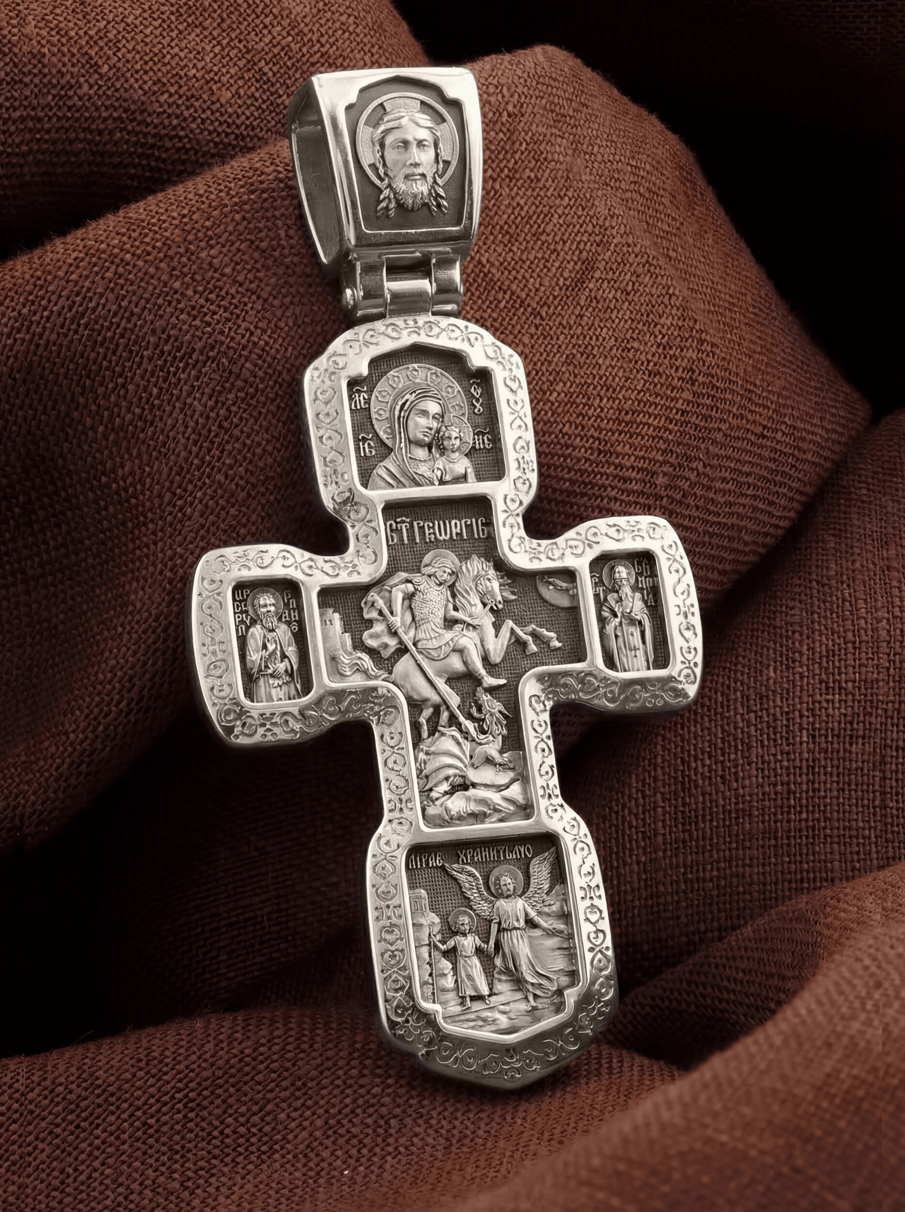 В центральной части оборота креста изображен Георгий Победоносец — покровителем и защитником воинов.