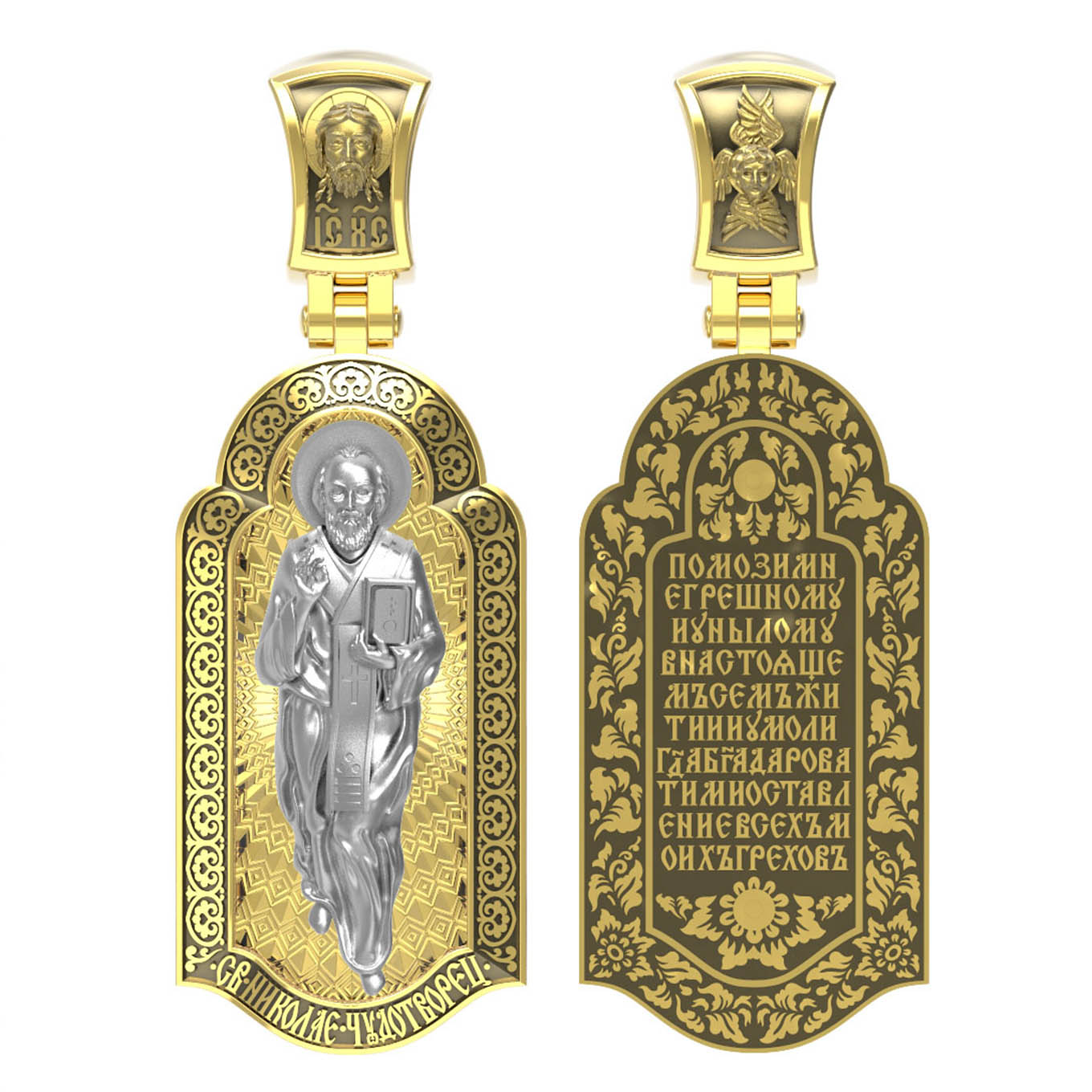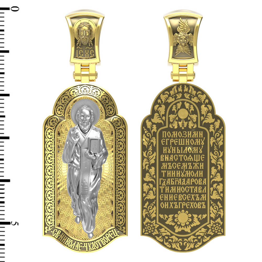 На лицевой стороне образка изображен Святитель Николай архиепископ Мир Ликийских, Чудотворец. Он является одним из самых почитаемых святых в православном мире. Избранник Божий Николай стал вершиной всех добродетелей. С кем из величайших праведников не сравнялся он образом духовной красоты, кому из них не последовал в своих деяниях и чудотворениях? Всеблаженный Николай был кроток, как Моисей, мужественен, как Давид, славен простотой нрава, как Иаков. Словно Ной, он спасал стадо Господне в новом ковчеге от потопа ересей. Вся жизнь святого Николая — это служение Богу. Много великих чудес сотворил на земле и на море великий Святитель Николай Угодник. Он укрощал штормы, спасал от потопления и выносил на сушу из глубины морской, освобождал из плена и приносил освобожденных домой, избавлял от уз и темницы, освобождал от смерти и подавал многим различные исцеления: слепым — прозрение, хромым — хождение, глухим — слух.