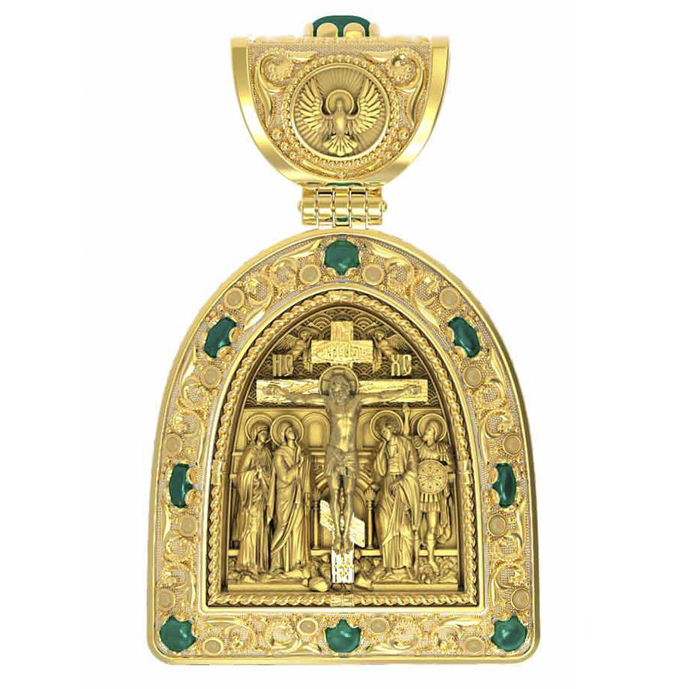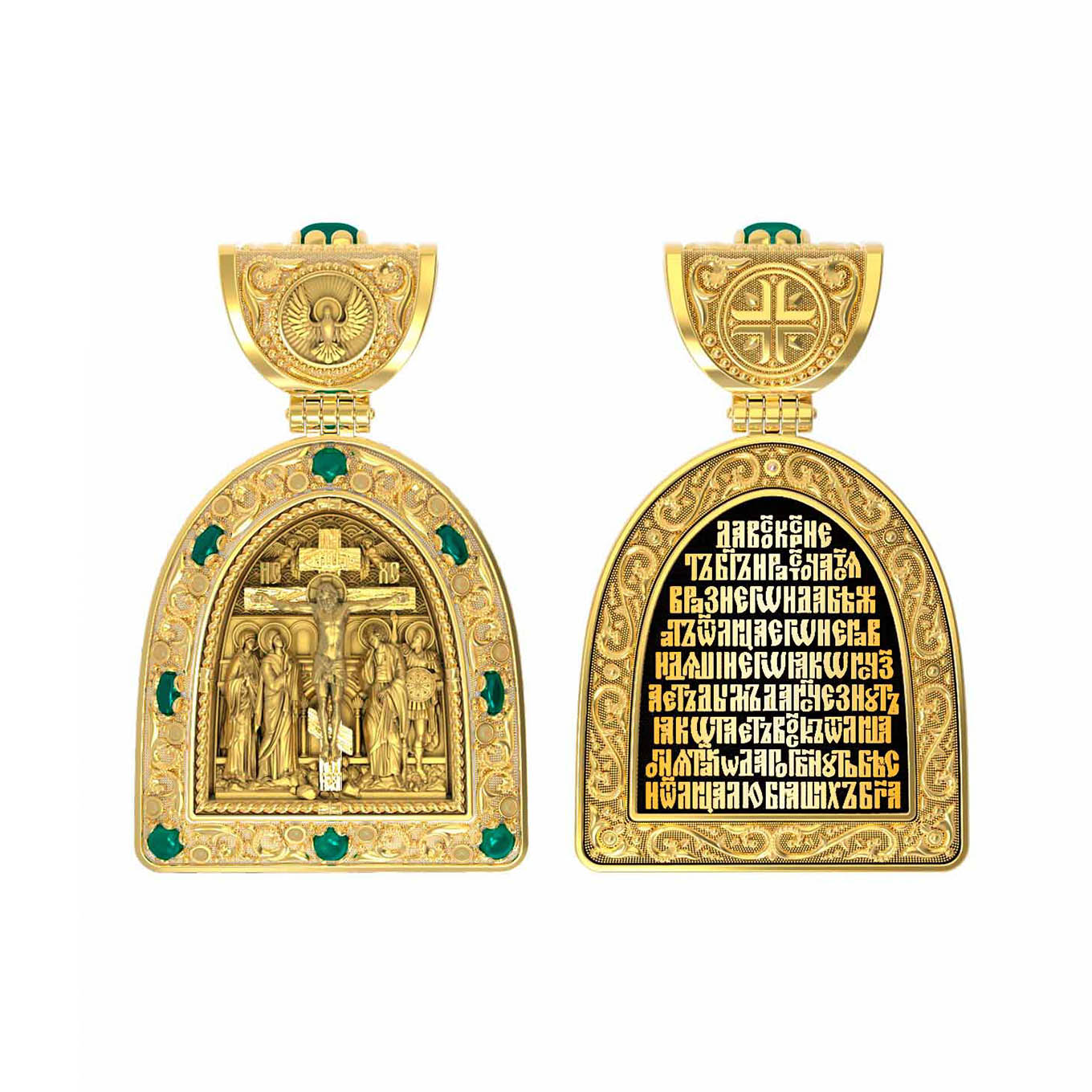 Образок из лимонного золота c эмалью и хризопразом