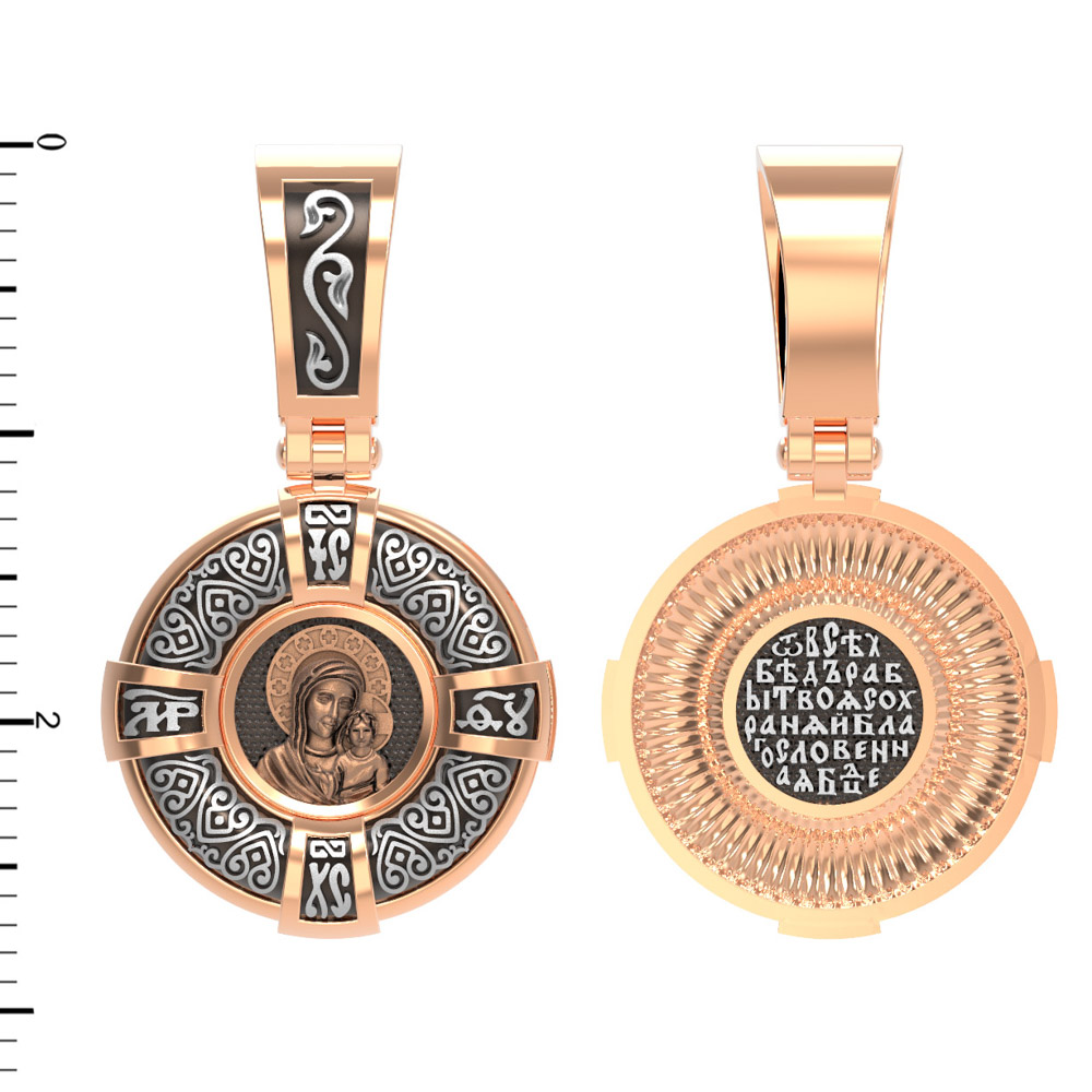 На лицевой части образка изображена Казанская икона Пресвятой Богородицы — одна из самых почитаемых в России чудотворных икон Богородицы. Богословское значение Казанской иконы — указать верующим истинный Путь к спасению, который лежит через Христа. Только Божия Матерь имеет настолько сильное дерзновение к Спасителю, что может ходатайствовать перед Ним за всех верных. Именно этот образ дарится новой повенчанной паре, как хранитель очага и семейная реликвия. Молитва перед Казанской иконой Божьей Матери помогает во всех сложных случаях жизни, в болезнях, во всех печалях, невзгодах, скорбях. Уникальная история появления, чудеса, случившиеся по молитвам православных людей возле образа — все это делает Казанскую Богородицу особенной, среди тысяч других икон.