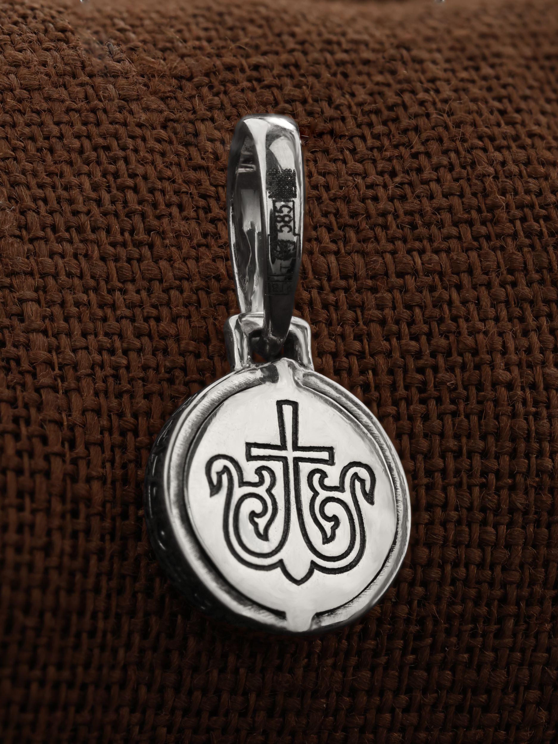 На обротной стороне изображён Крест «виноградная лоза». Крест, имеющий наклонное подножие, а из нижнего конца как бы вьются вверх два стебля с листами и с виноградной кистью на каждом. «Я есмь лоза, а вы ветви; кто пребывает во Мне, и Я в нем, тот приносит много плода» (Ин. 15, 5). Виноградной лозой называл себя Сам Спаситель и с тех пор образ этот стал глубоко символичен- Главное значение виноградной лозы для христиан, — пишет А. С. Уваров, — находилось в символической связи с Таинством Причащения. Причащаясь, пребываем мы во Господе, и Он в нас, и тогда получаем много «плода духовного».