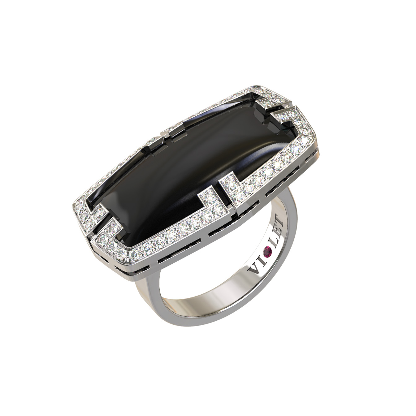 Кольцо из белого золота c бриллиантами, рубином и ониксом