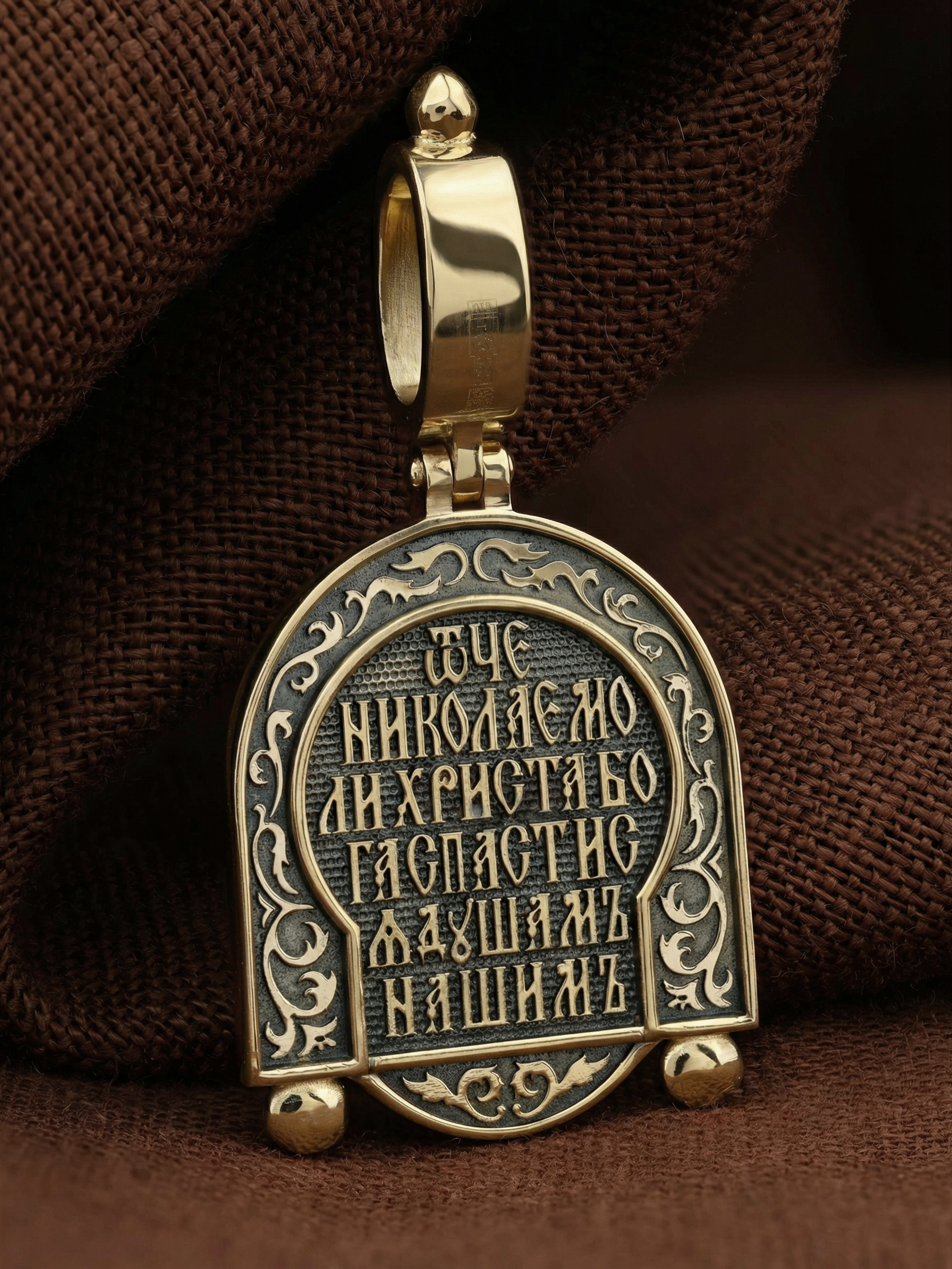 На оборотной стороне образка написаны слова молитвы: «Отче Николае, моли Христа Бога спастися душам нашим».
