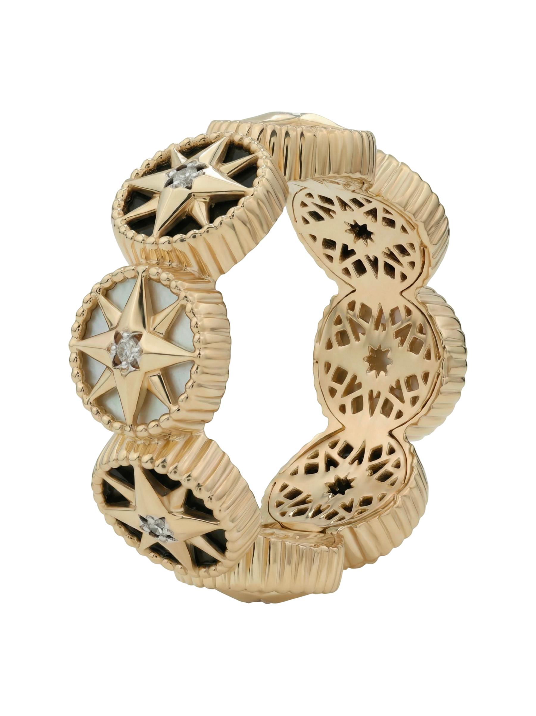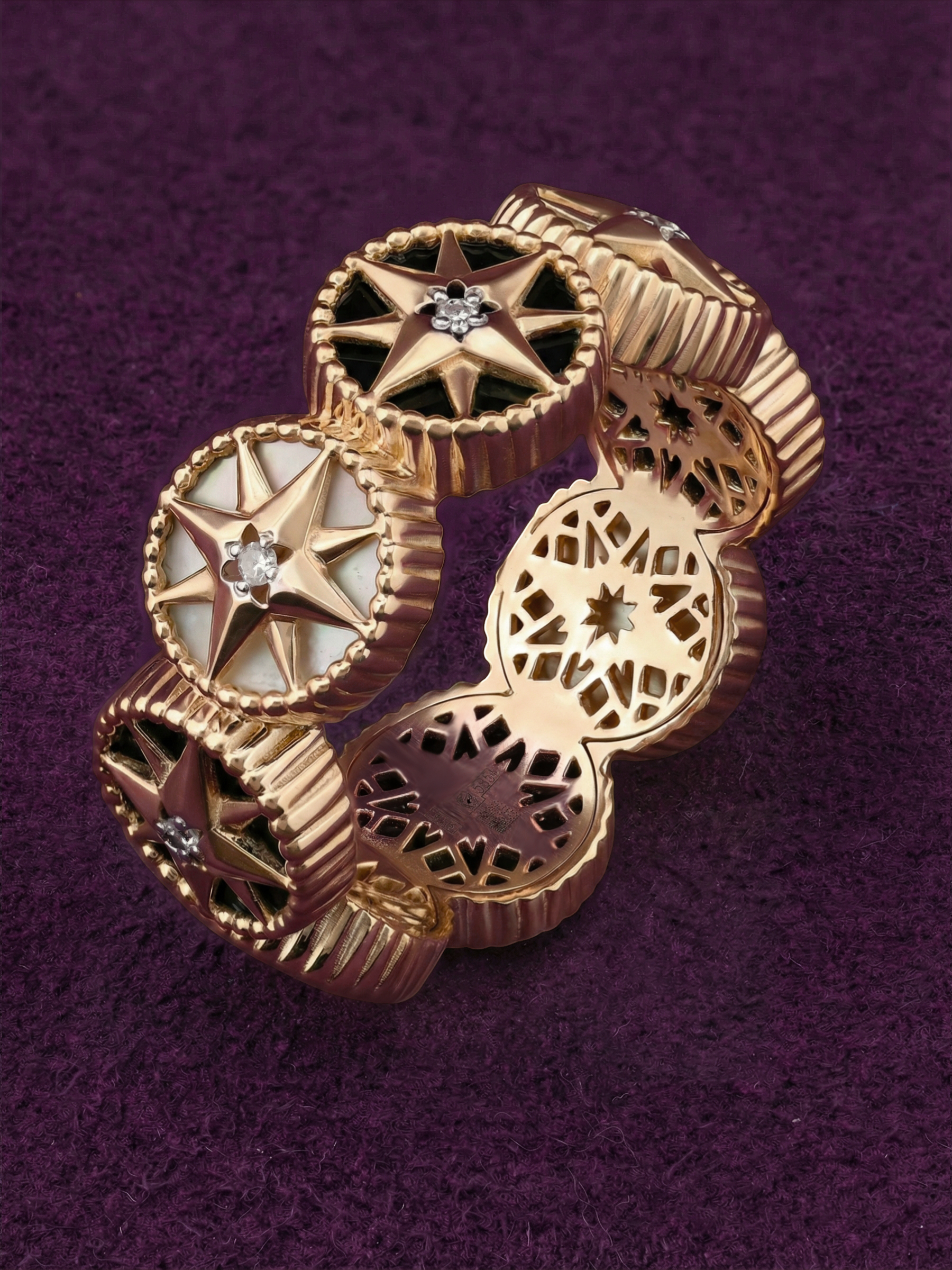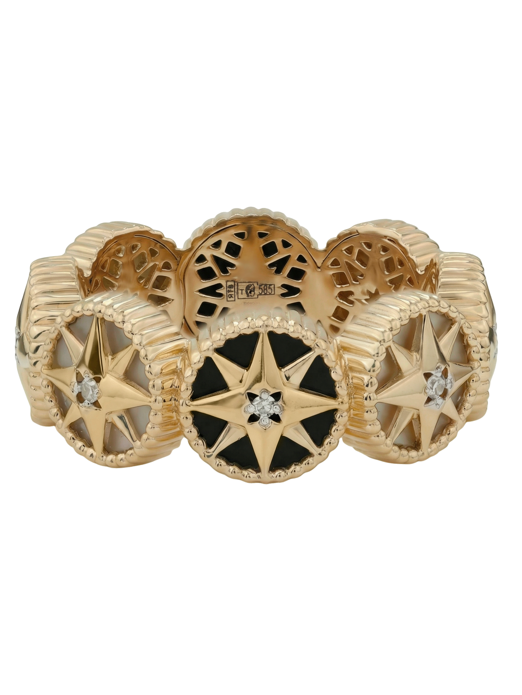 Кольцо из золота c бриллиантами, ониксом и перламутром