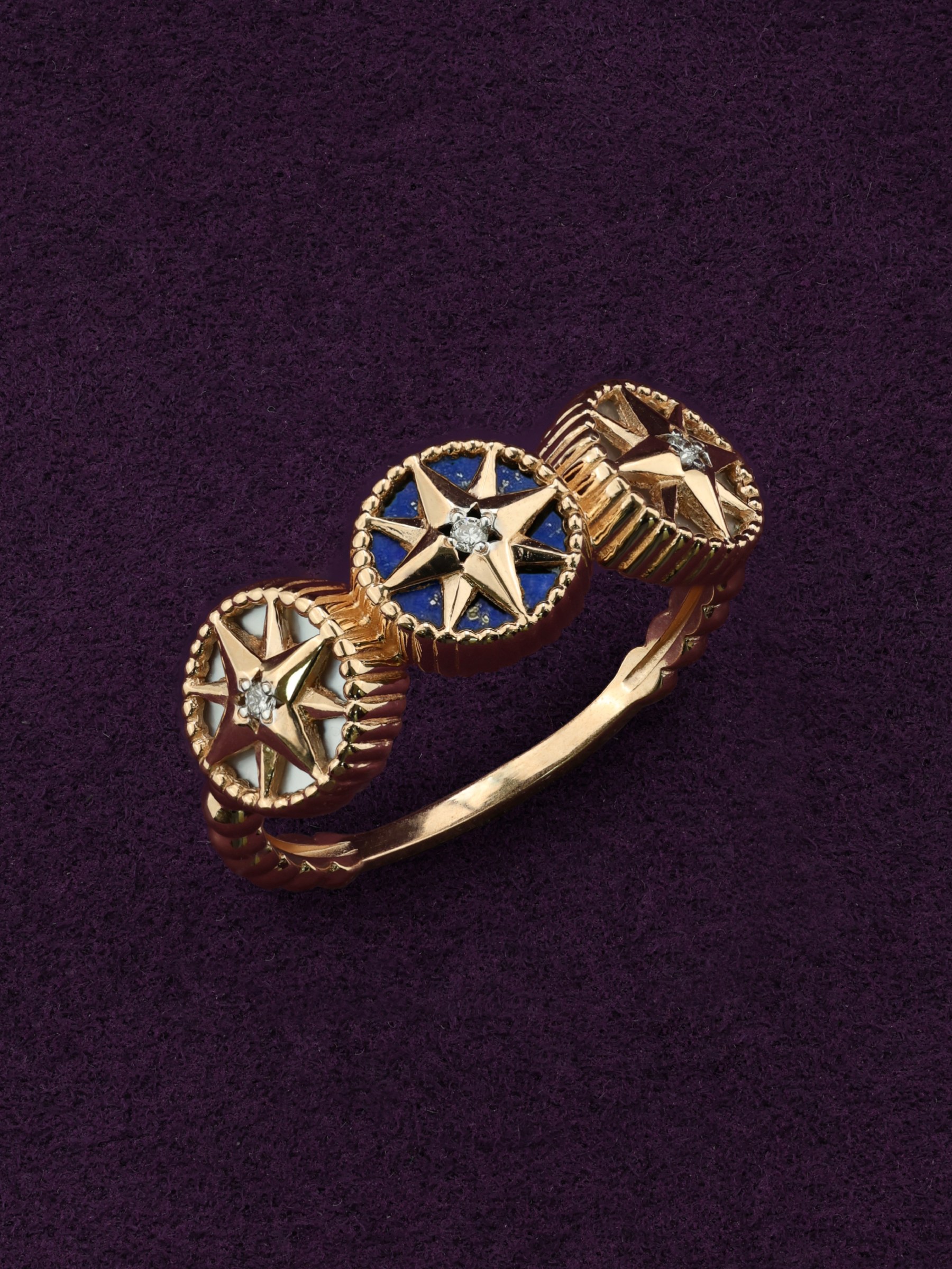 Кольцо из золота c бриллиантами, лазуритом и перламутром