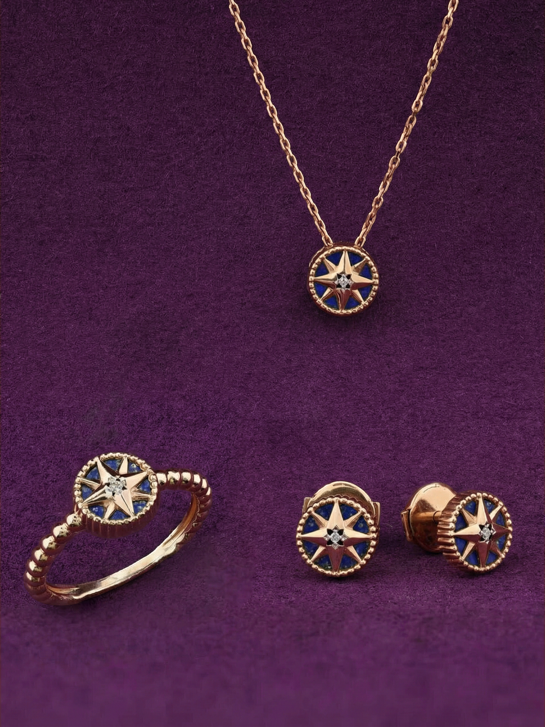 Кольцо из лимонного золота c бриллиантами и лазуритом