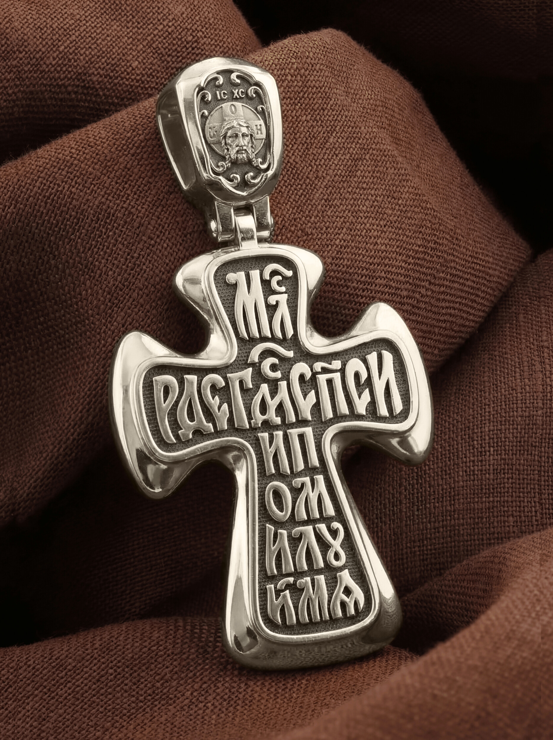 Всю оборотную часть креста занимает молитва обращенная к Господу: «Милостивый Господи, спаси и помилуй мя».