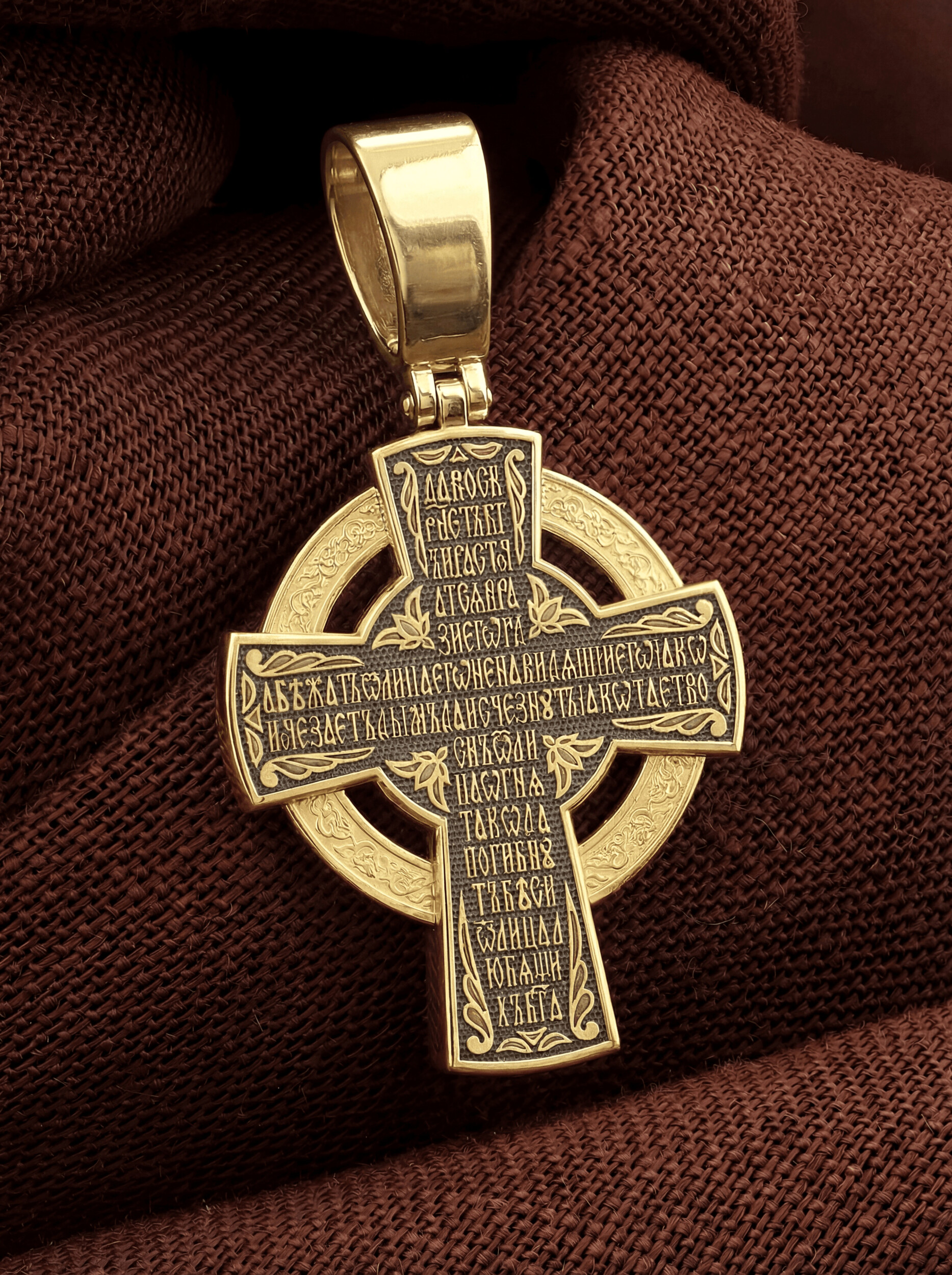 Нательный крест с кругом повторяет форму древних крестов, распространенных в России с конца XIII века. Простая лаконичная форма соединяет в себе два символа Бога: крест и круг. Крест знаменует Иисуса Христа, Бога, воплотившегося и распятого за грехи людей, круг — Бога сущего на Небесах, безначального и бесконечного. Часто такие кресты называют «кельтскими» или «новгородскими», так как кресты подобной формы были принесены на Русь кельтами, задолго до русских принявших христианство. Древнейший русский крест такой формы был найден в новгородской земле, в селе Боровичи.