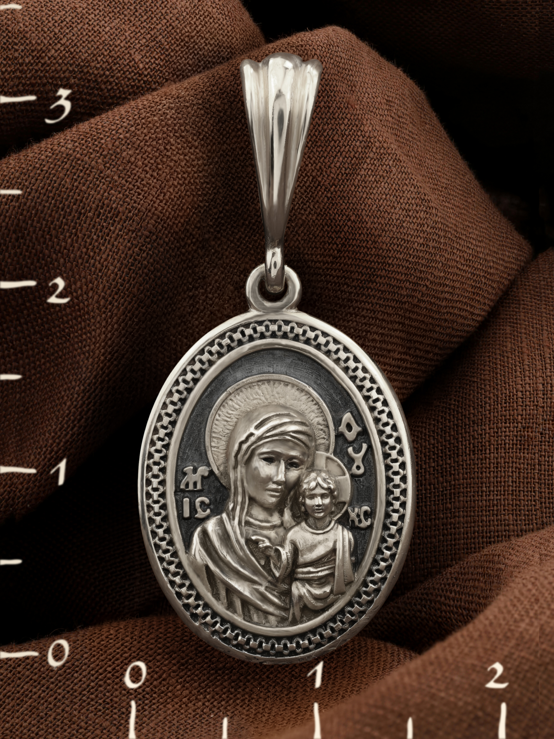 На лицевой части образка изображена Казанская икона Пресвятой Богородицы — одна из самых почитаемых в России. Икона была явлена на пожарище в Казани в 1579 году. В 1904 году святыня была похищена и уничтожена, но чудотворную силу иконы Богородица явила во многих ее списках. Молитва перед Казанской иконой Божьей Матери помогает во всех сложных случаях жизни, во всех печалях, невзгодах, скорбях.