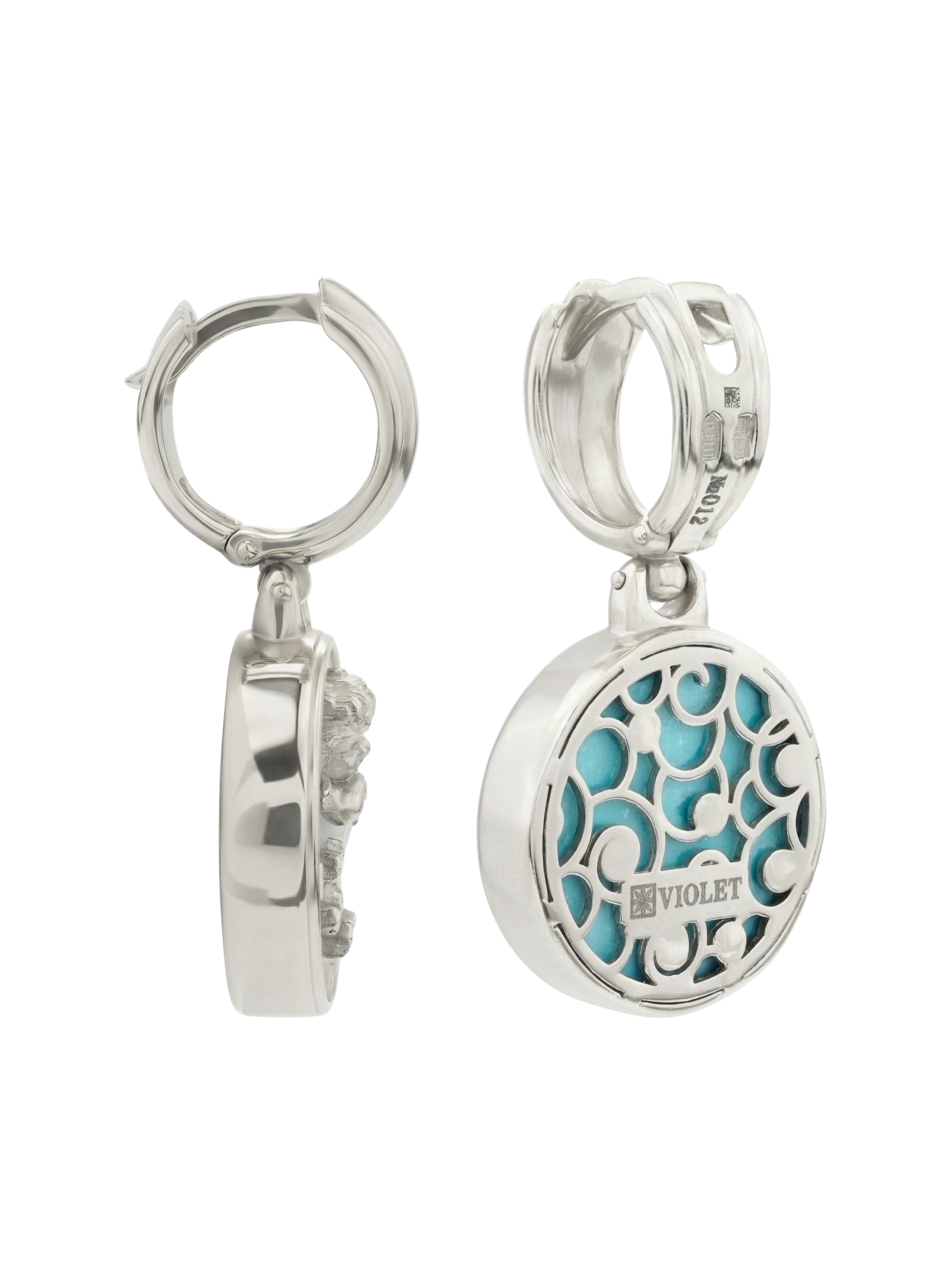 Серьги из белого золота c бирюзой и перламутром