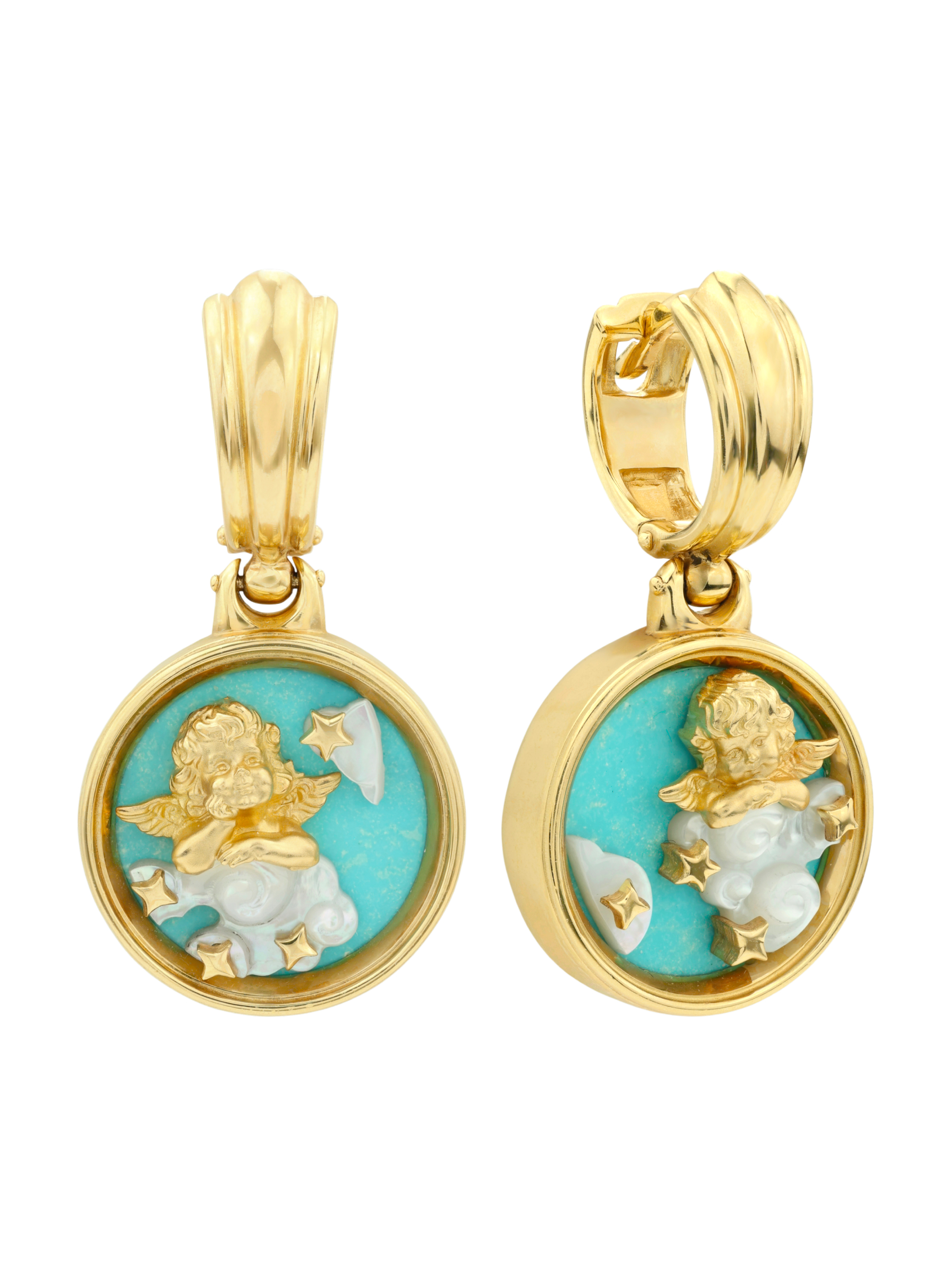 Серьги из лимонного золота c бирюзой и перламутром