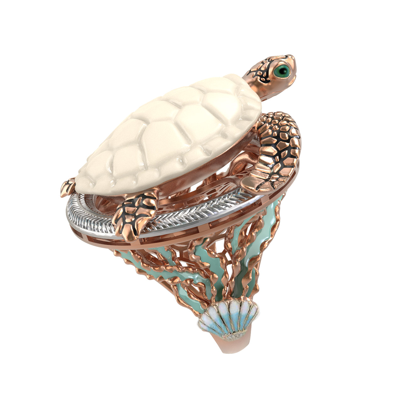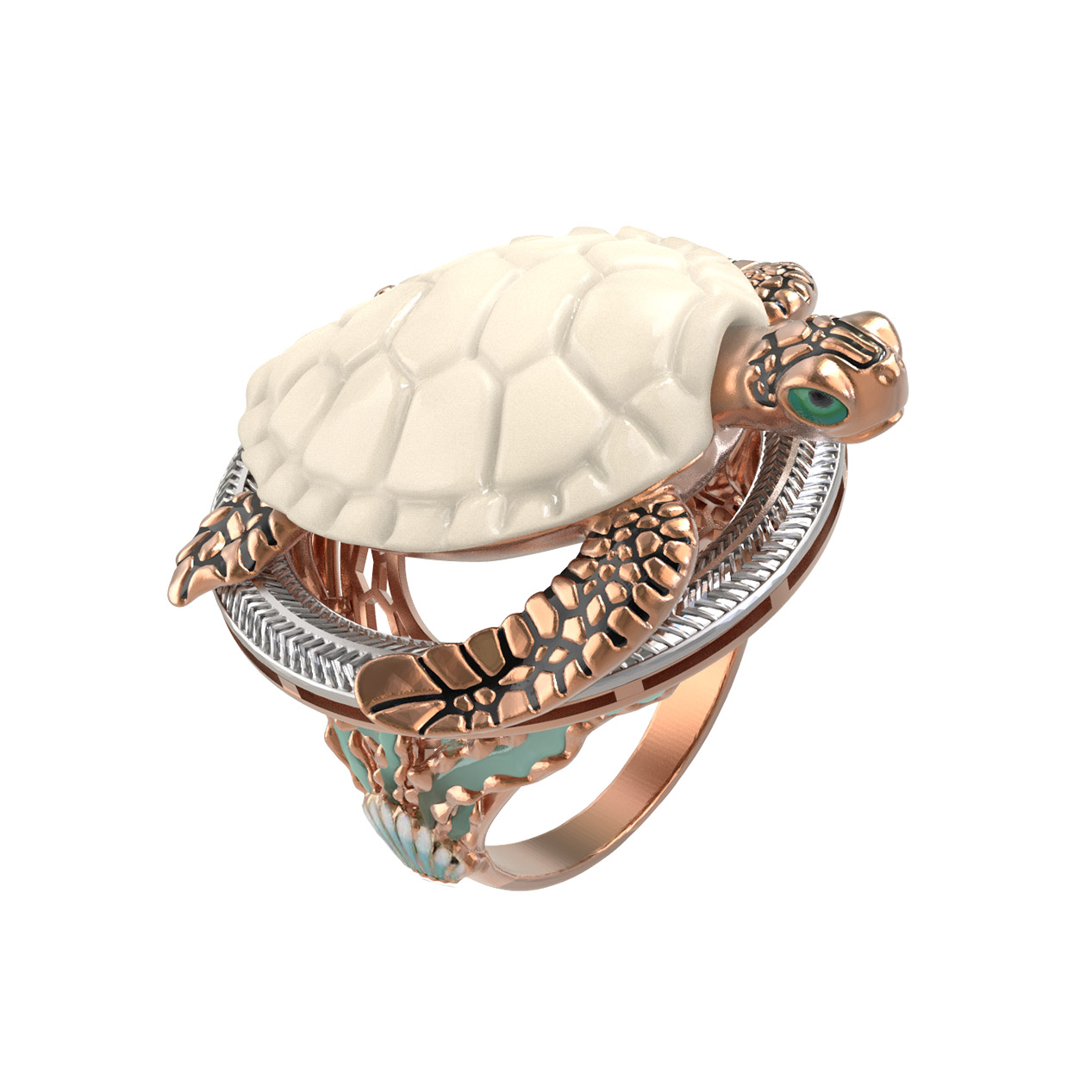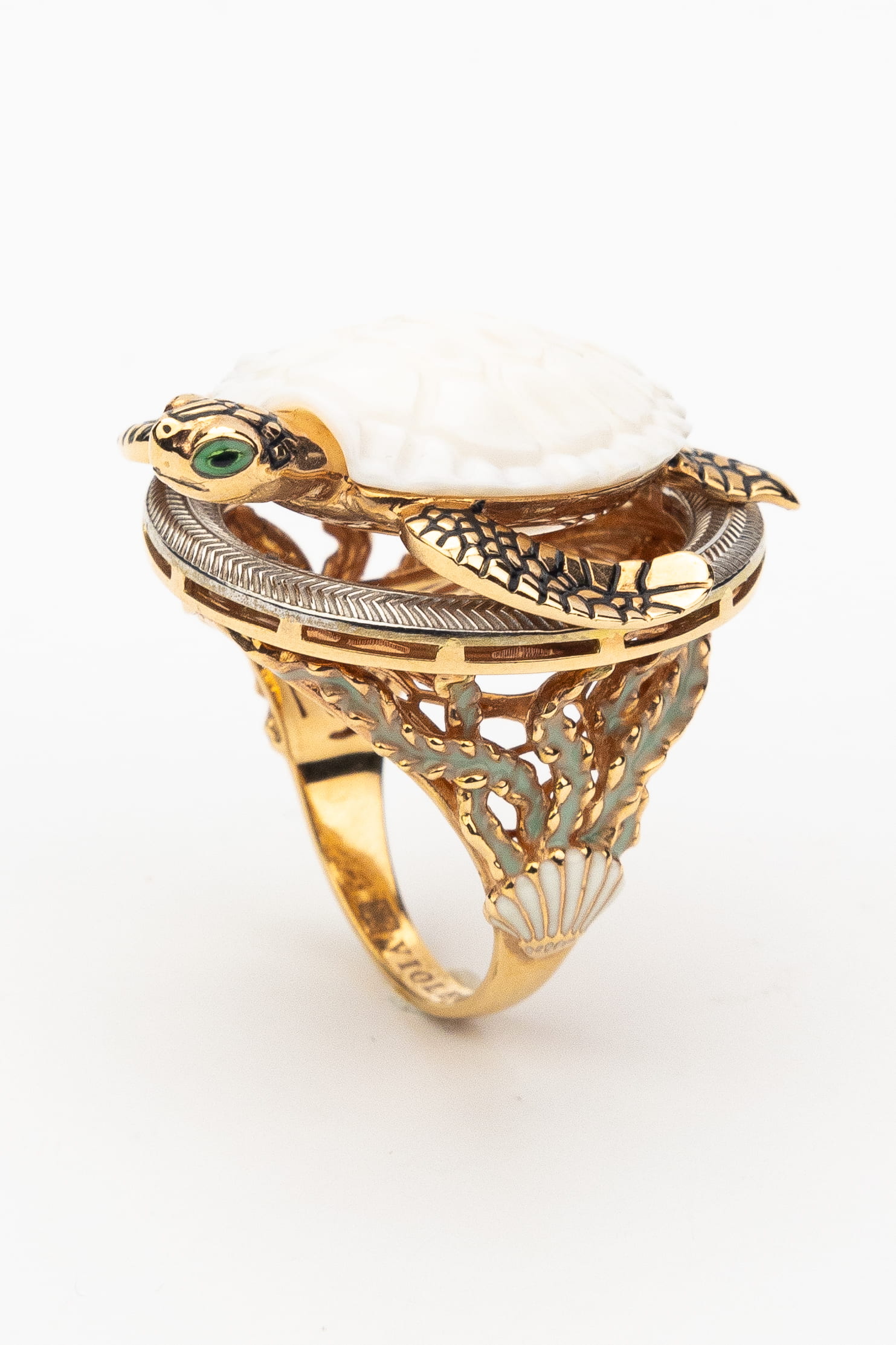 Кольцо из золота c эмаль и бивнем мамонта