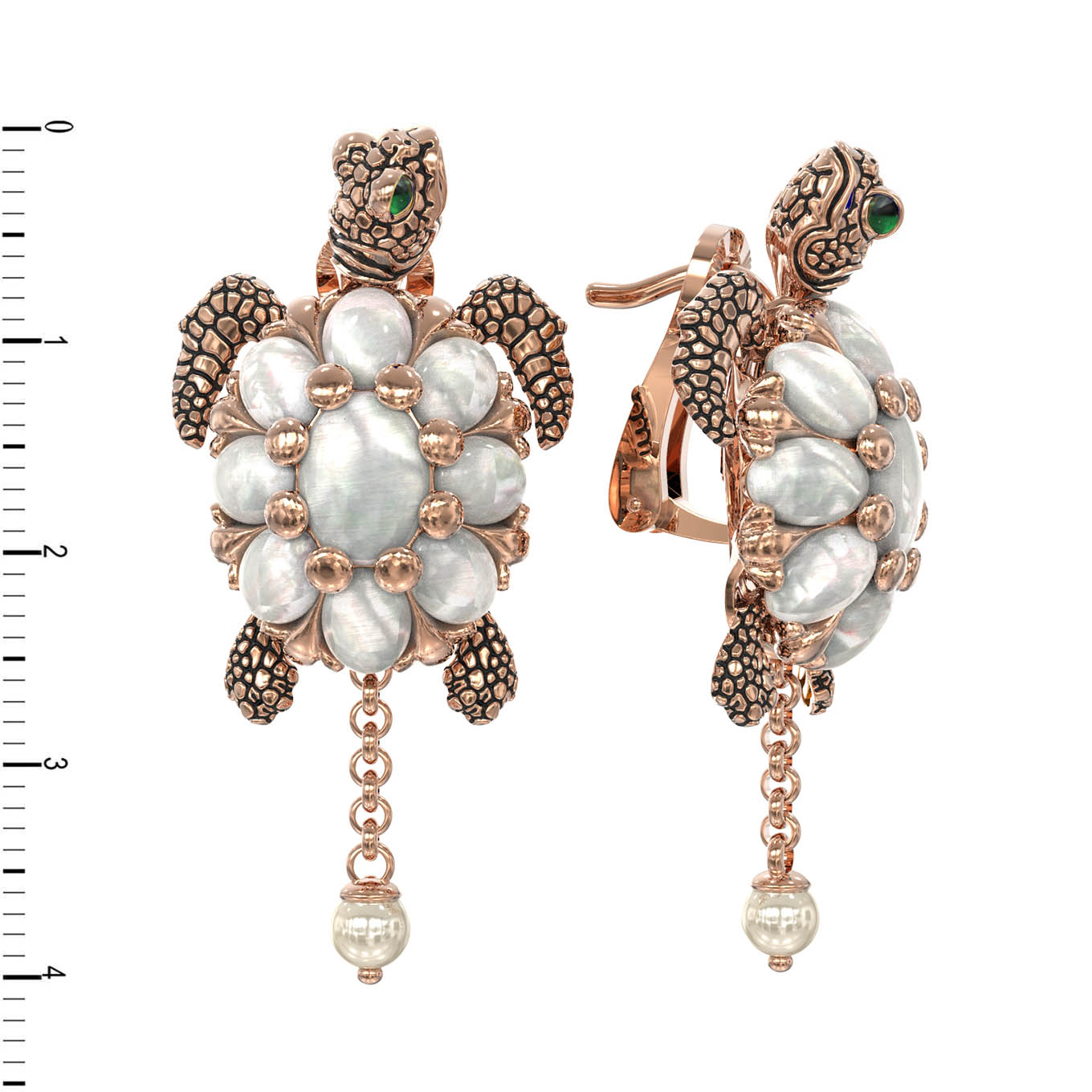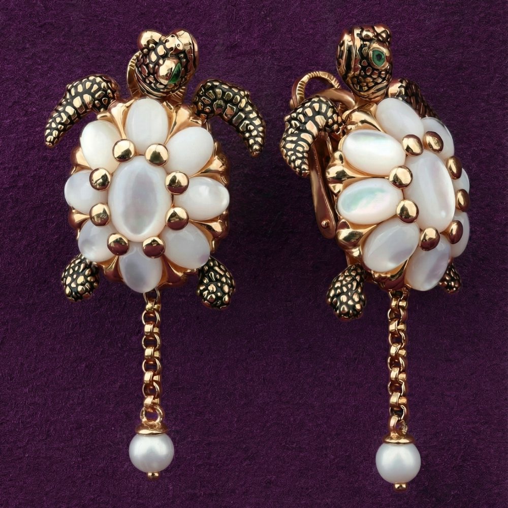 Серьги из золота c эмалью, жемчугом и перламутром