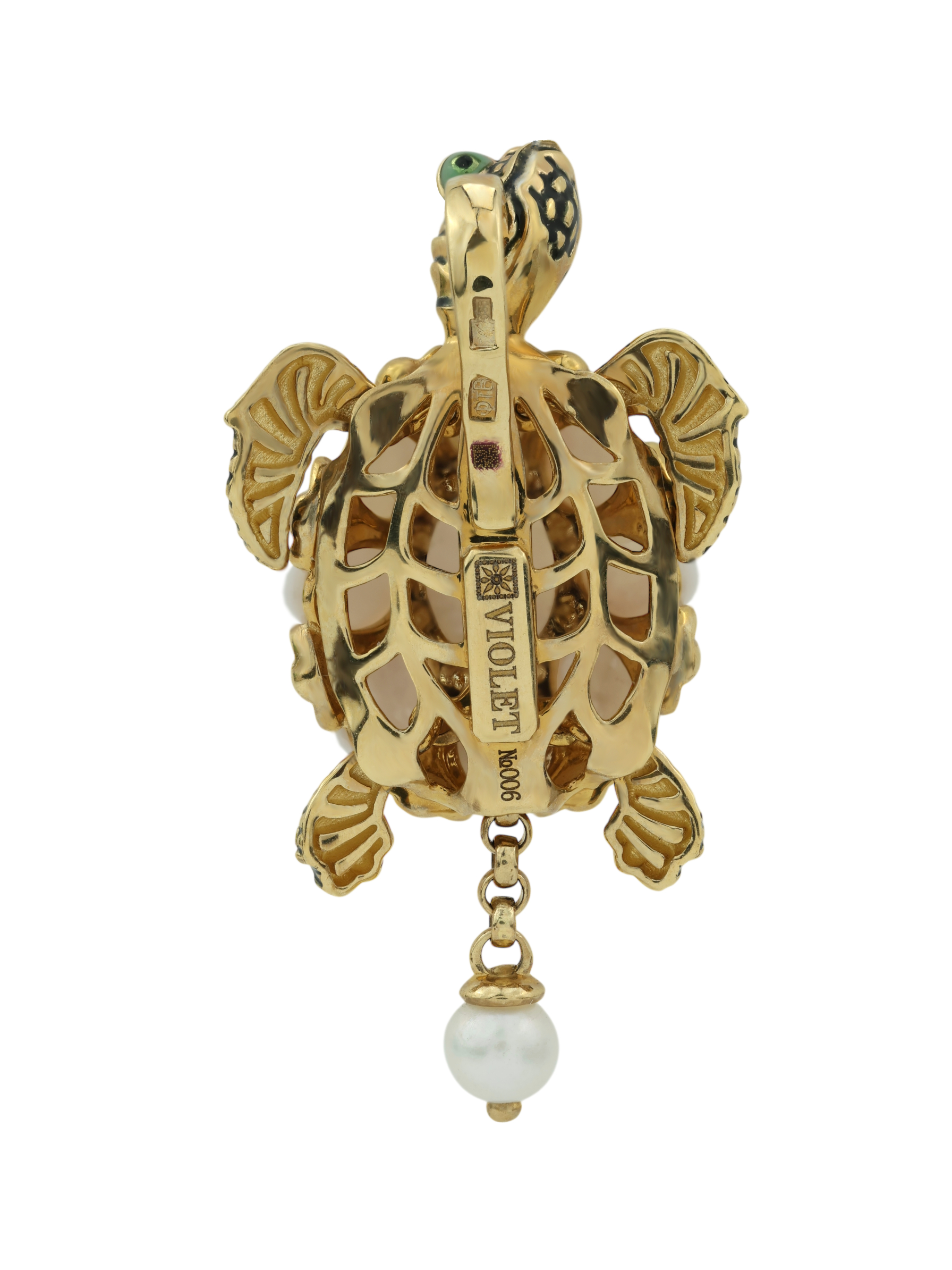 Подвеска из лимонного золота c эмалью, жемчугом и перламутром