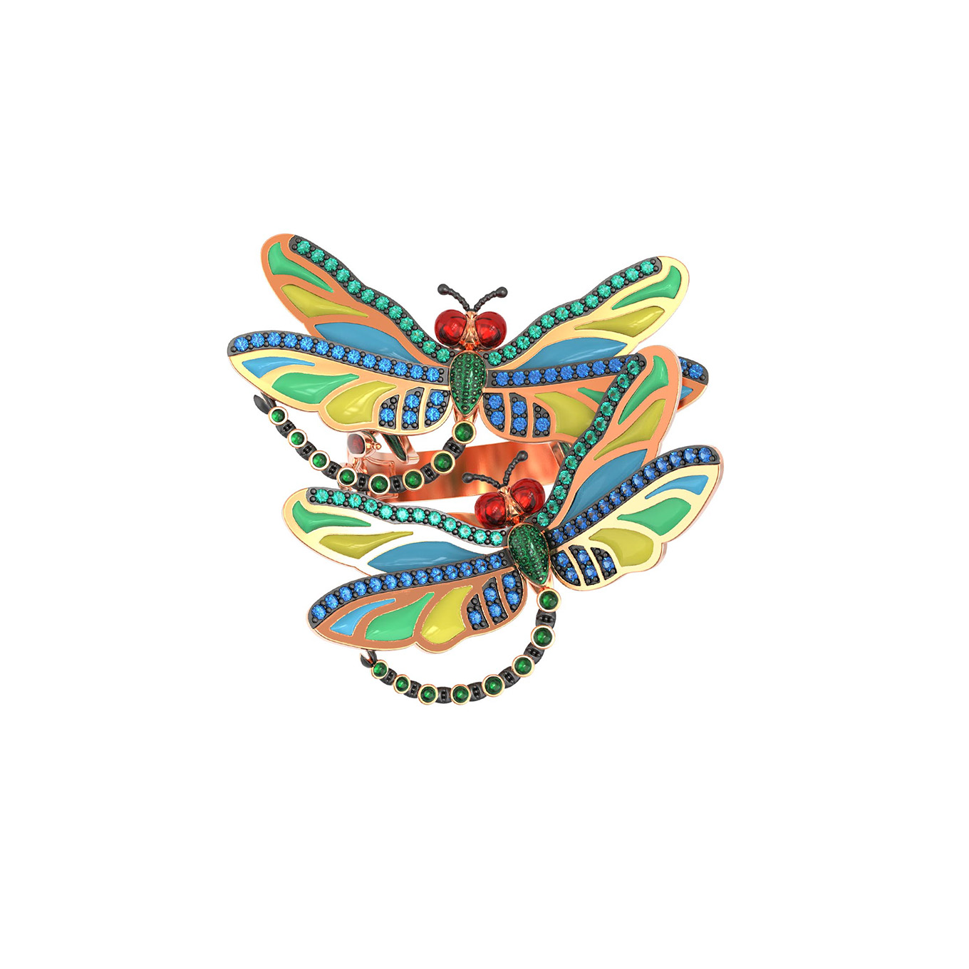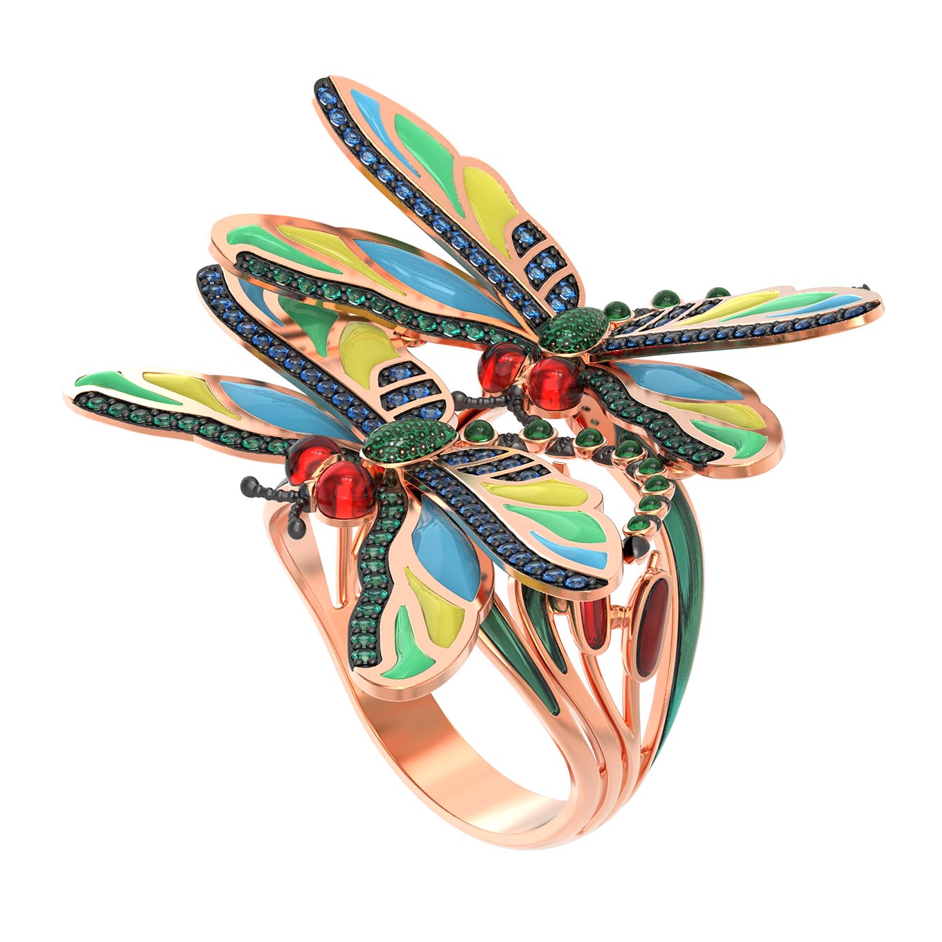 Кольцо из золота c сапфиром, изумрудом и эмалью