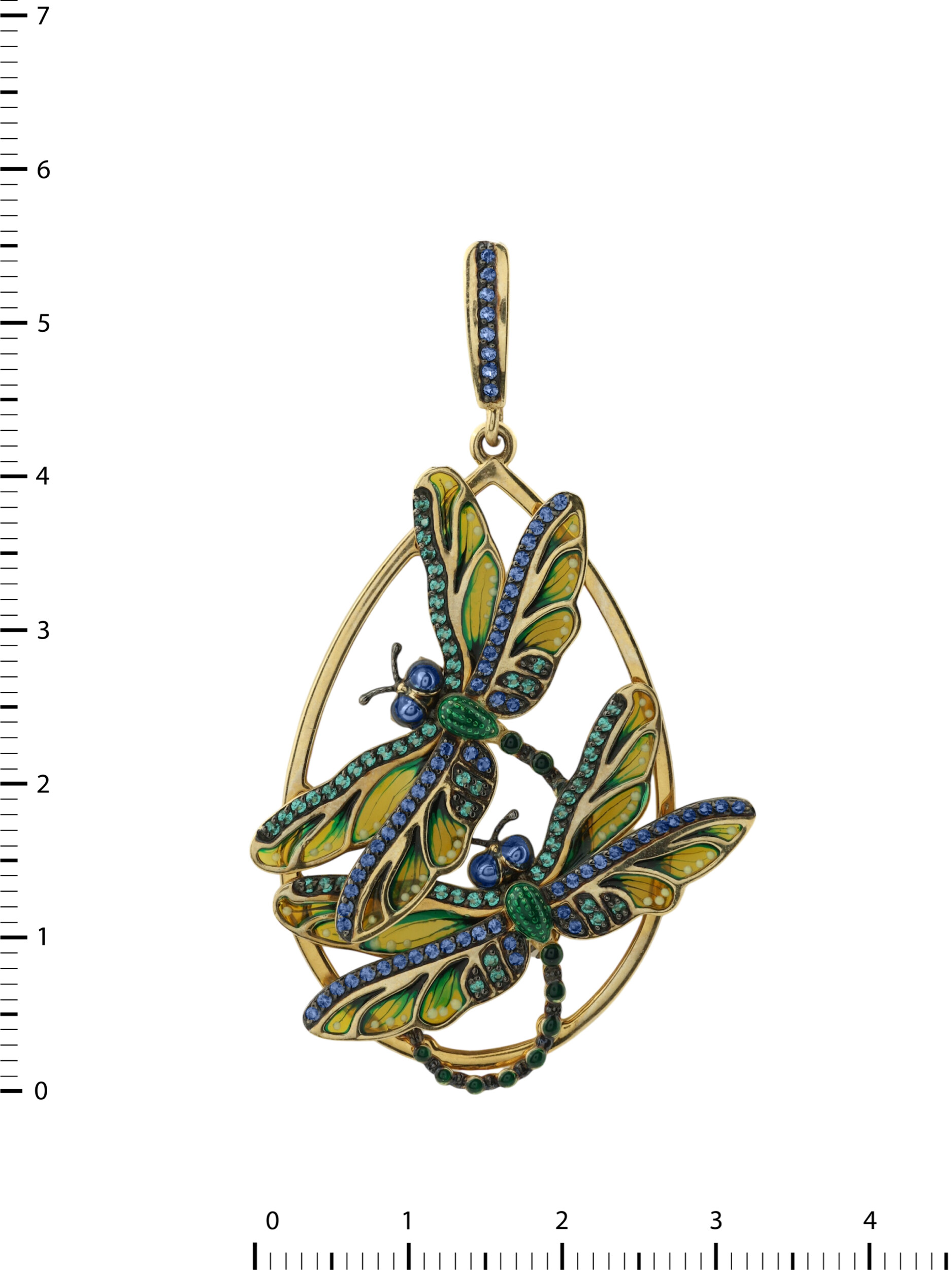 Подвеска из лимонного золота c сапфиром, изумрудом и эмалью