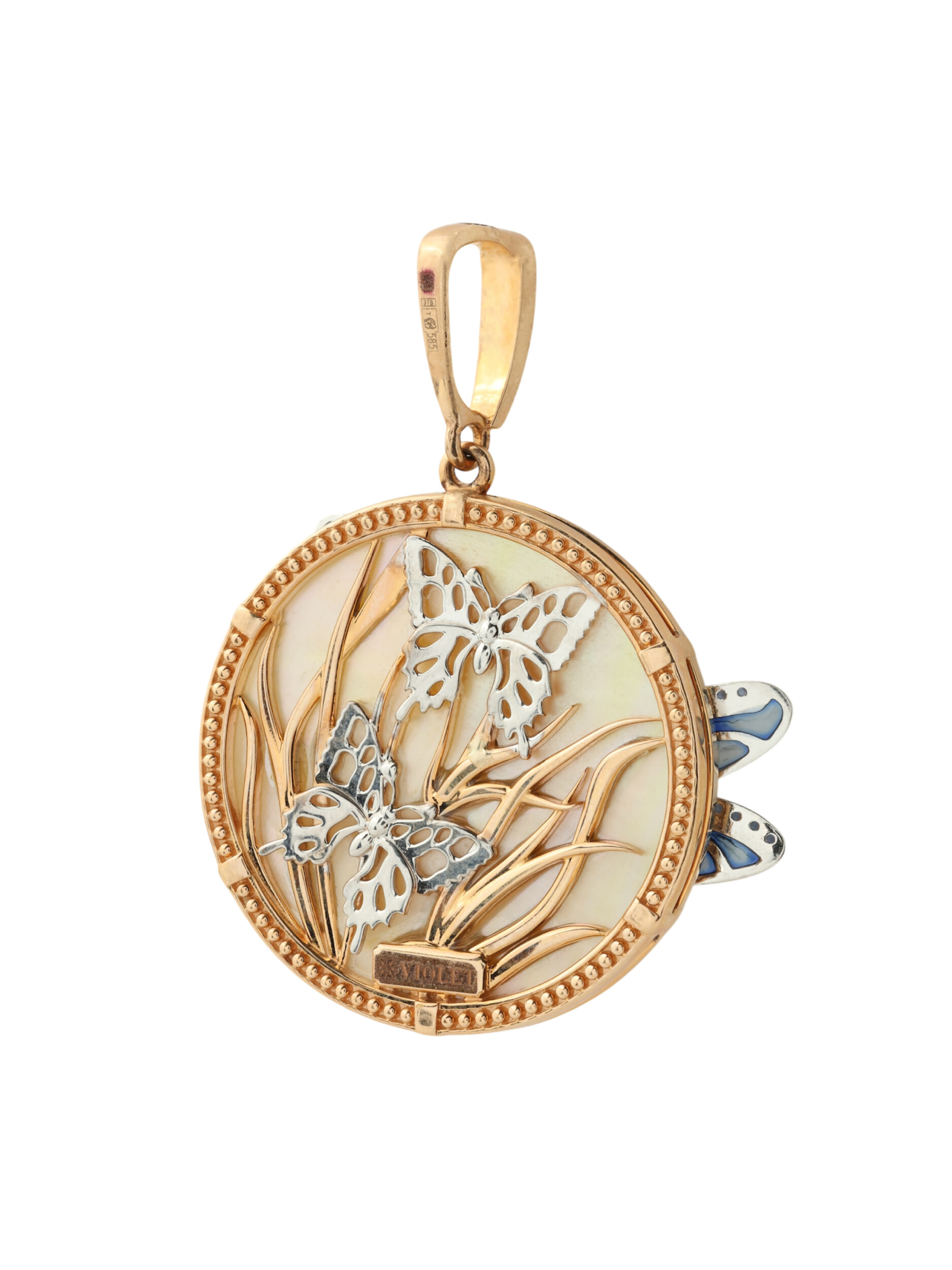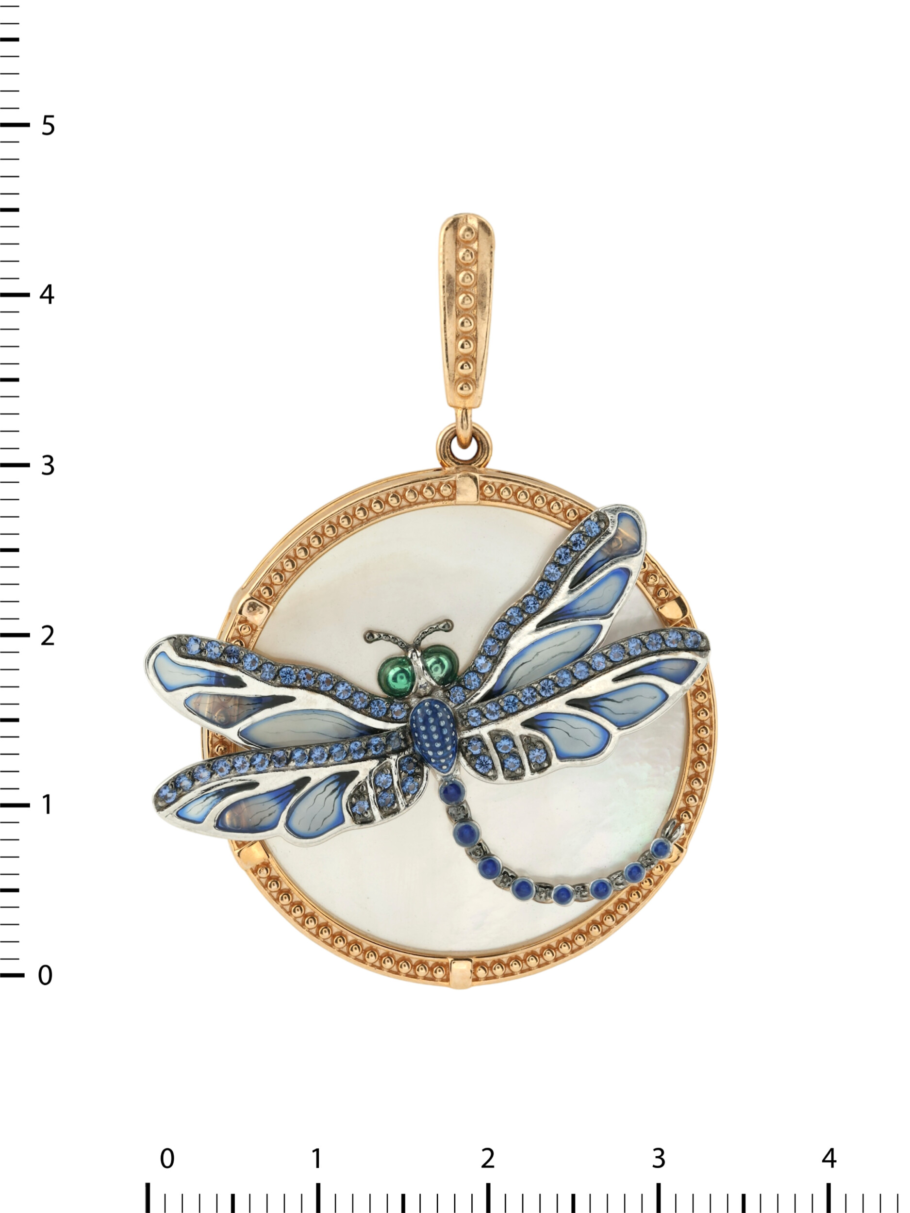 Подвеска из золота c сапфиром, эмалью и перламутром