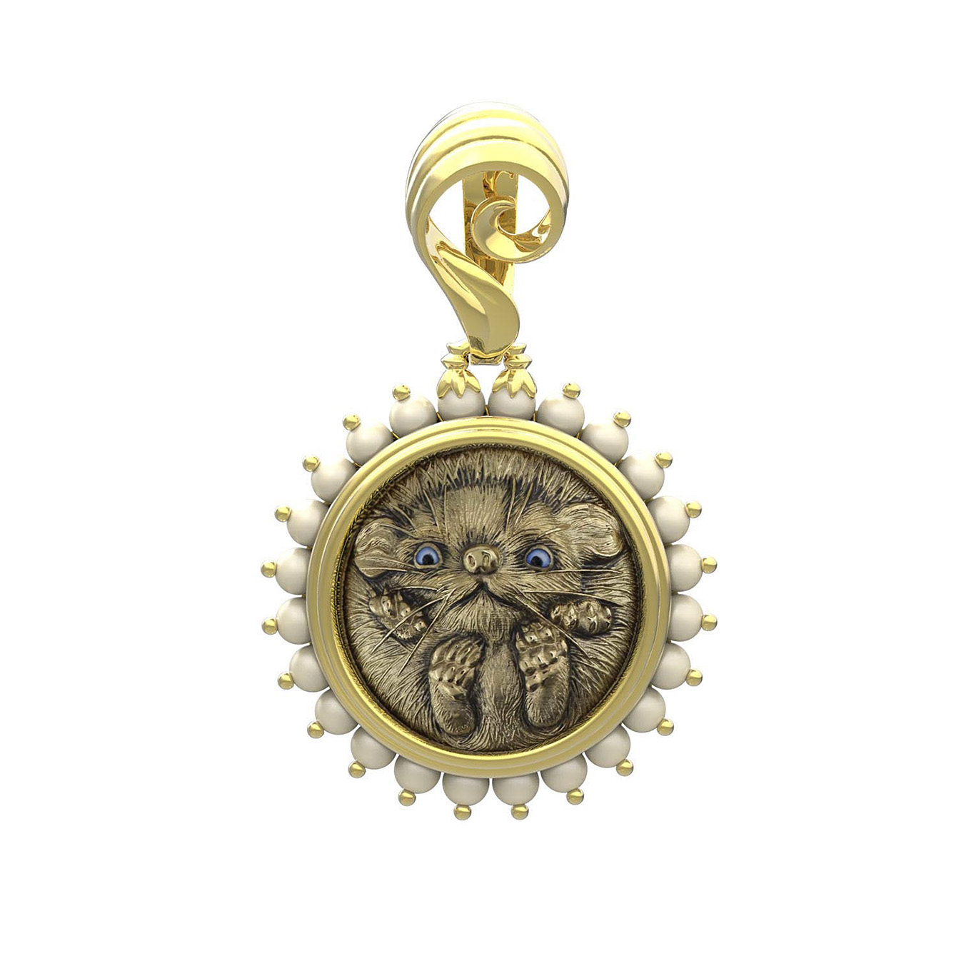Подвеска из лимонного золота c эмаль и жемчугом
