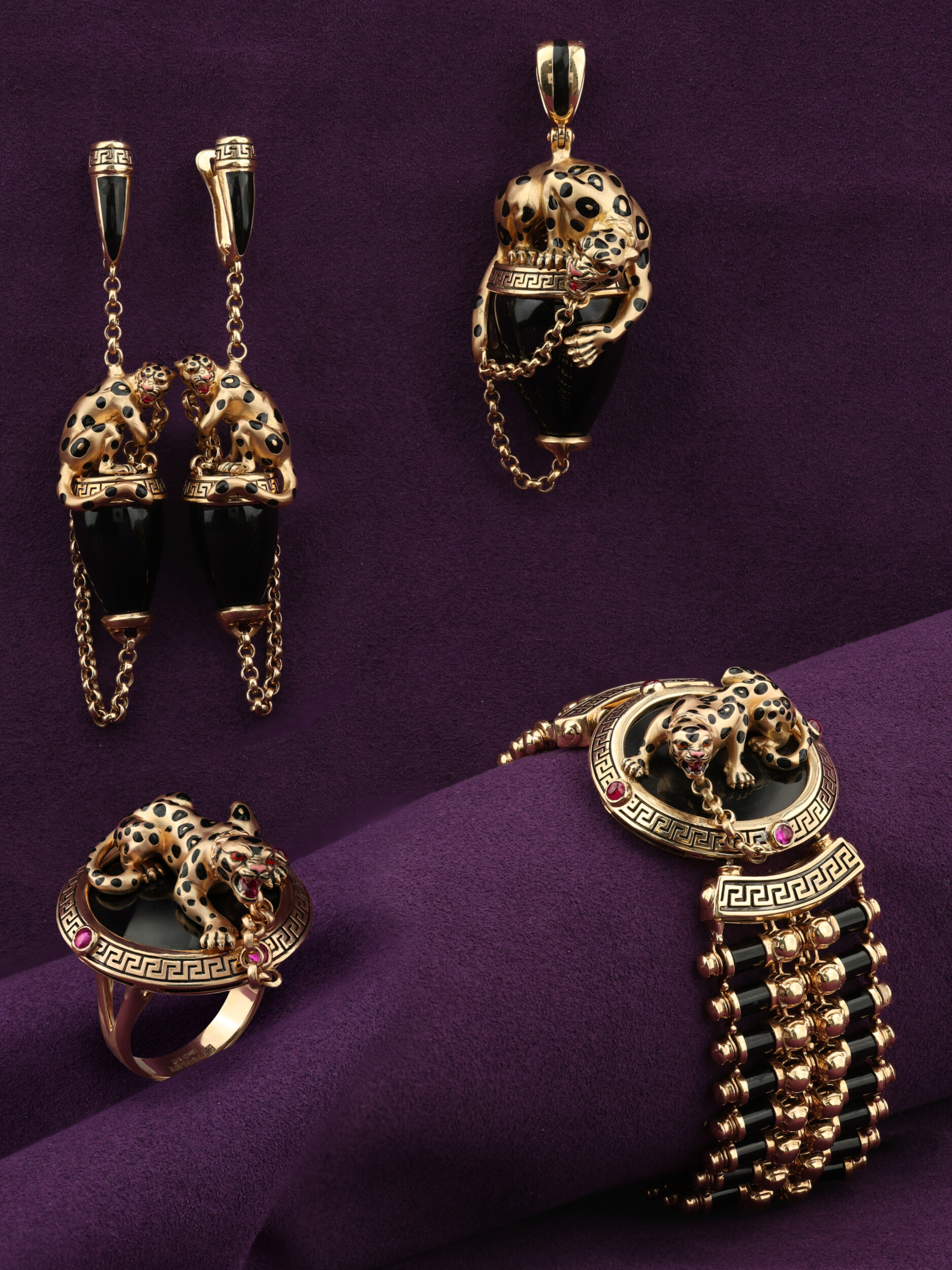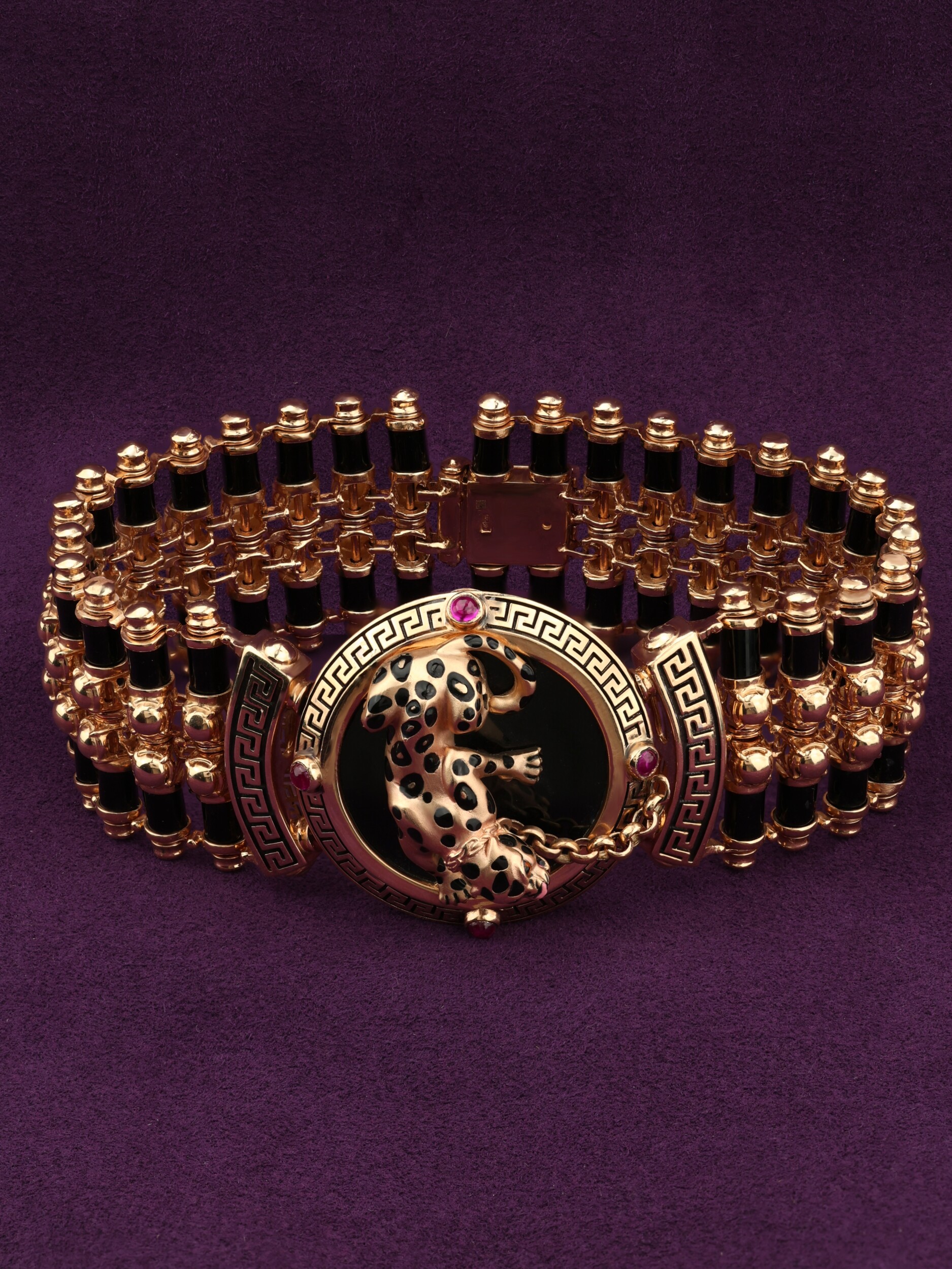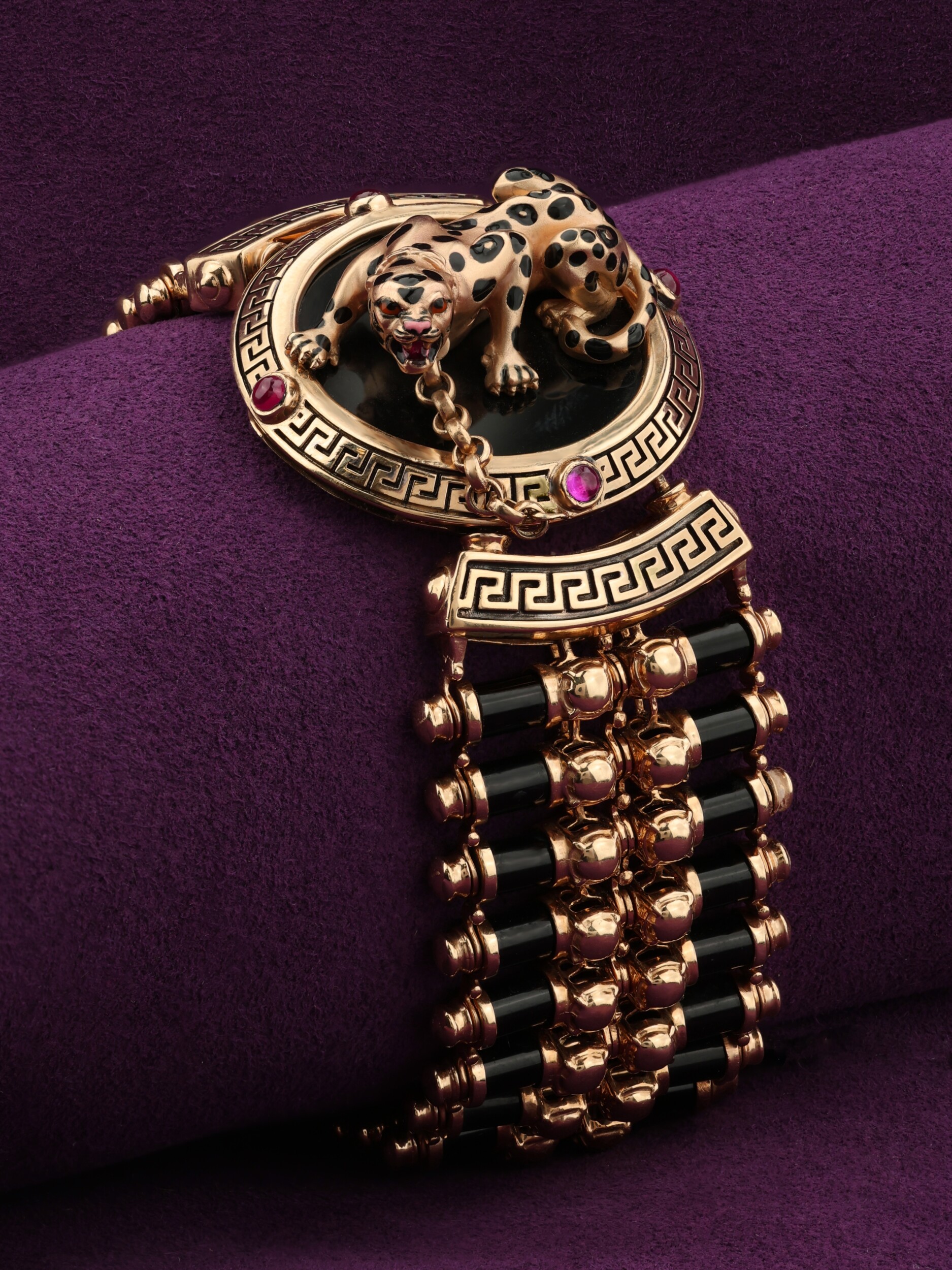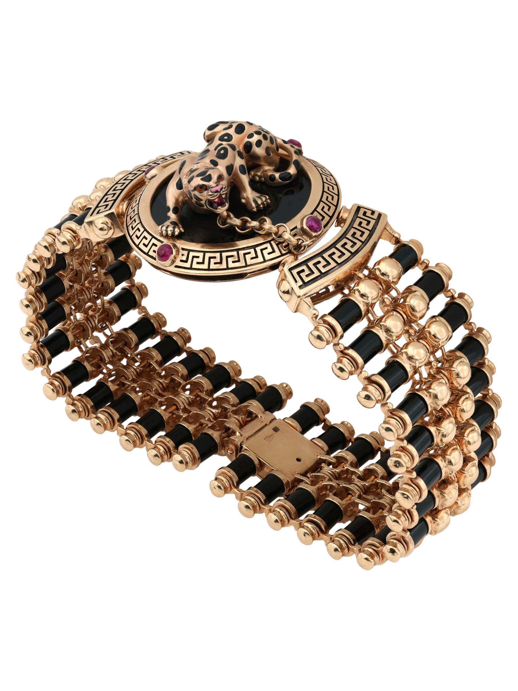 Браслет из золота c эмалью, ониксом и рубином