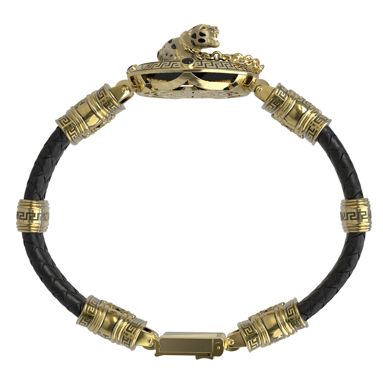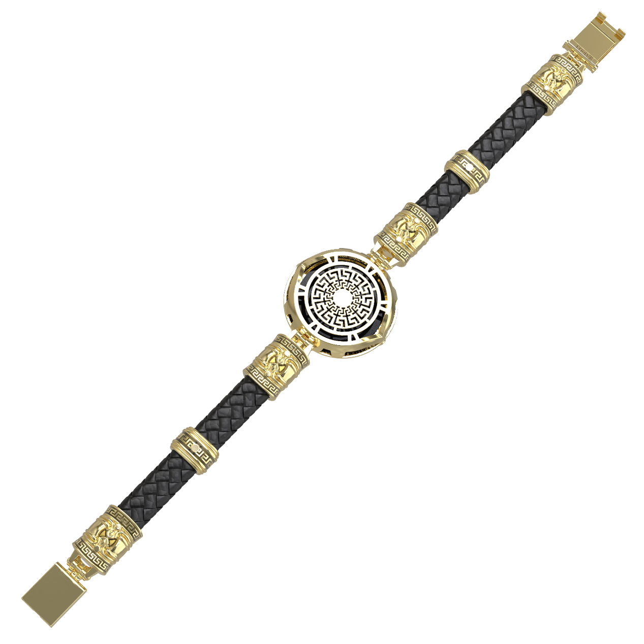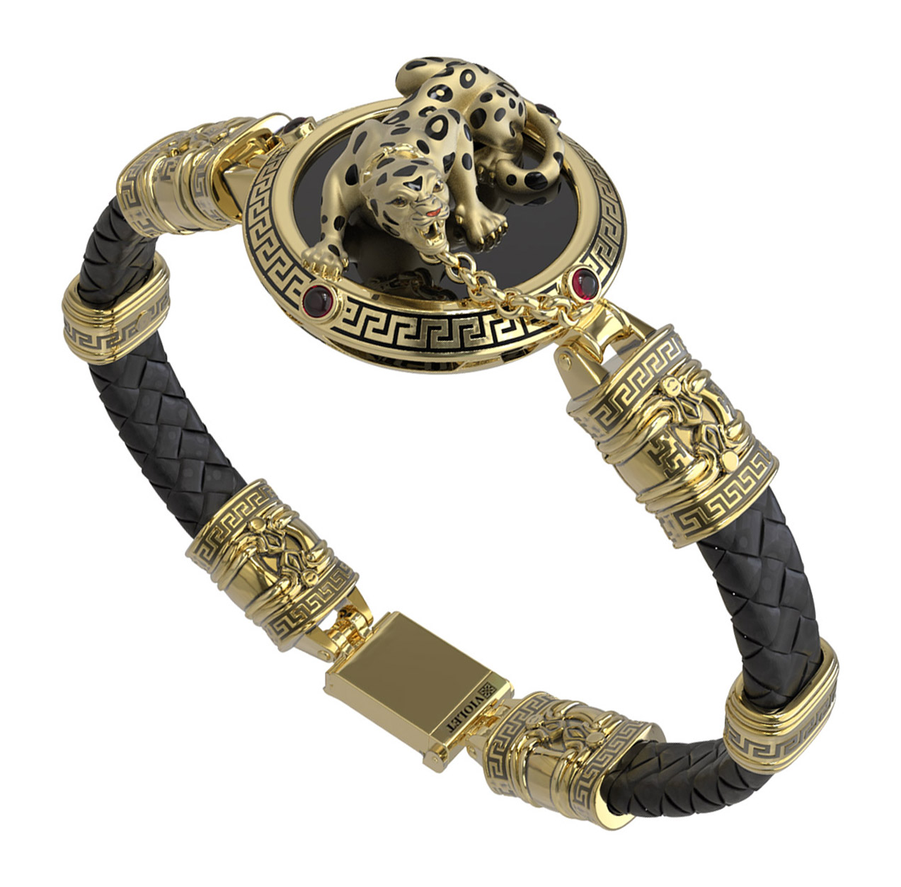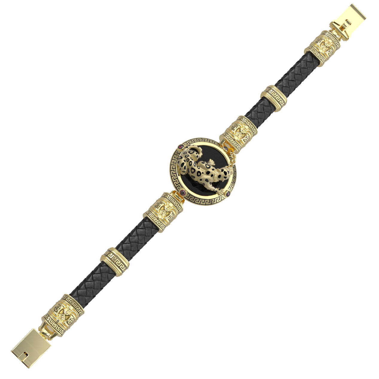 Браслет из лимонного золота c эмаль, шнурком, ониксом и рубином