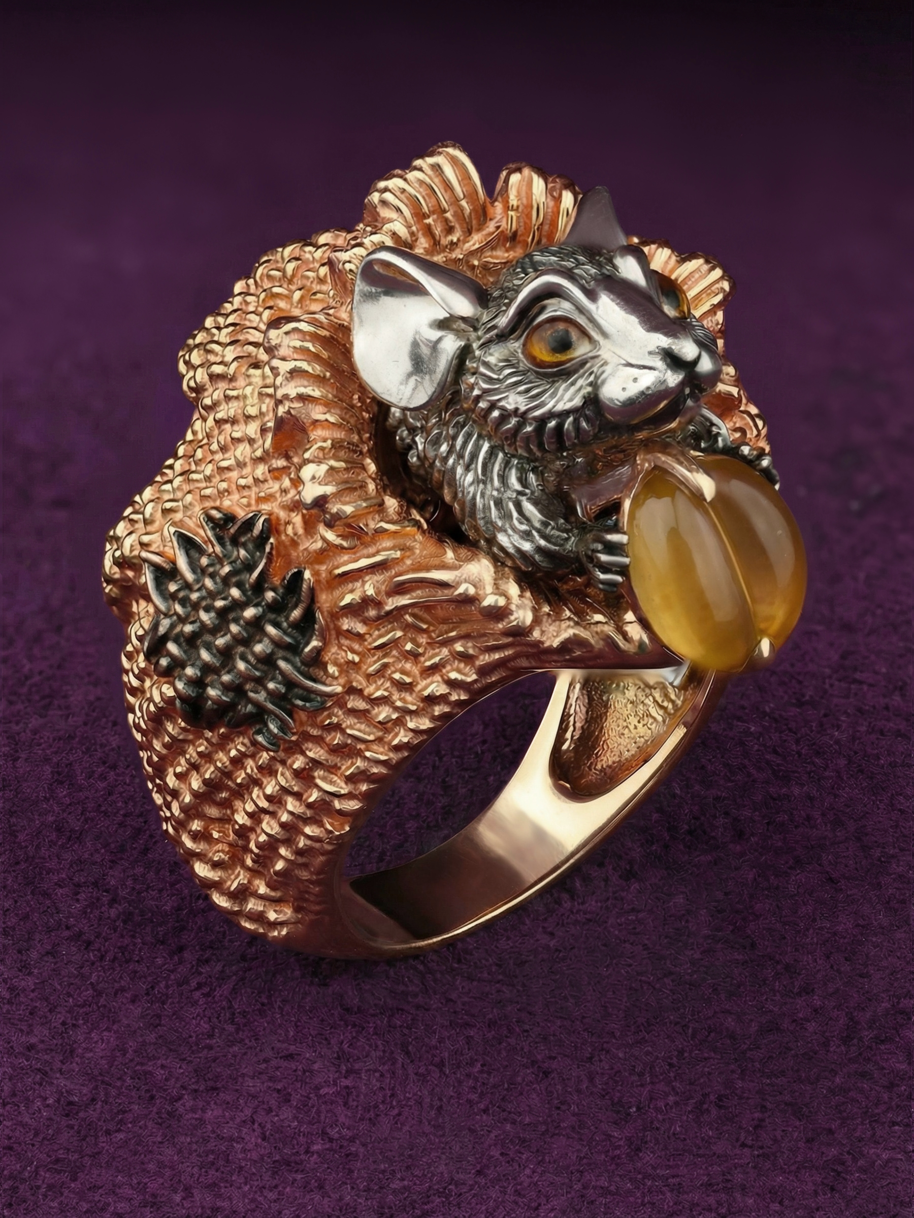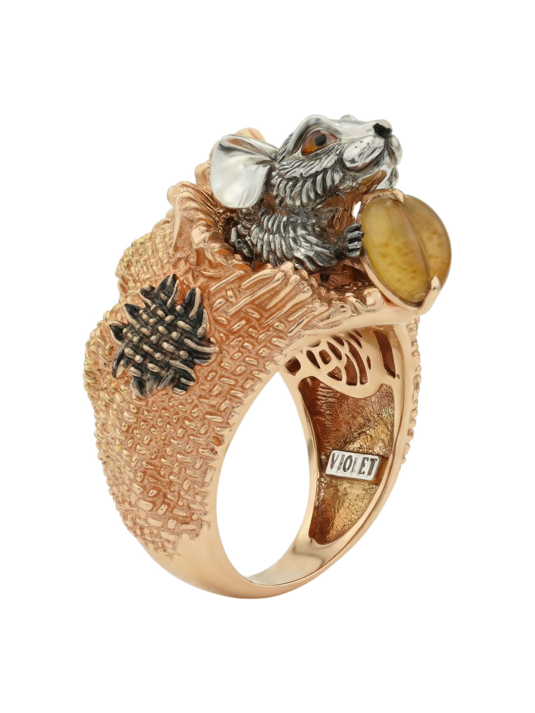 Кольцо из золота c эмаль и янтарём