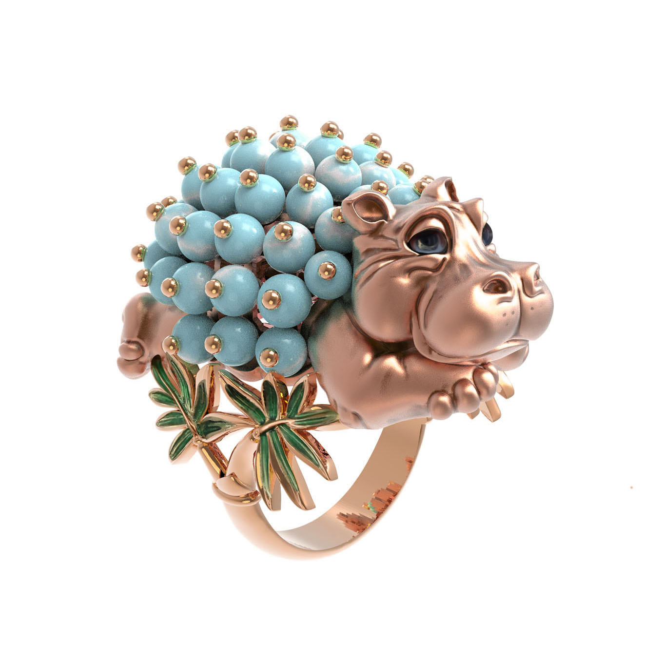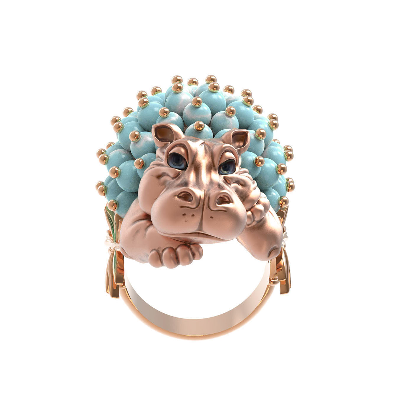 Кольцо из золота c эмаль и бирюзой