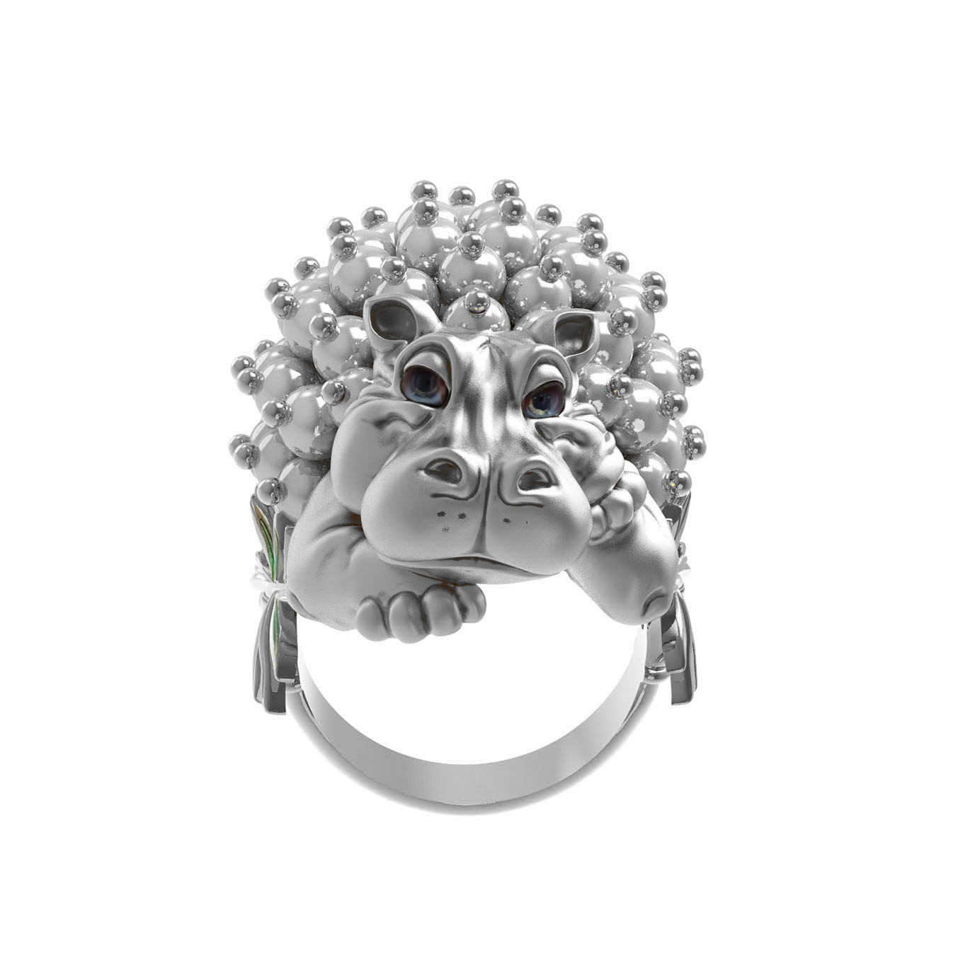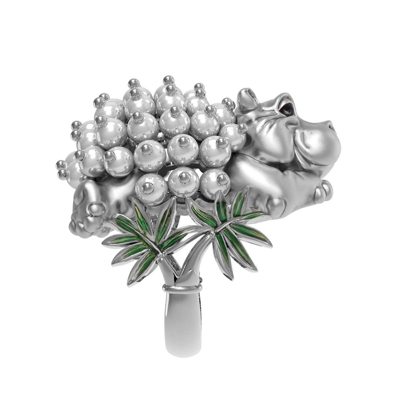 Кольцо из белого золота c эмаль и жемчугом