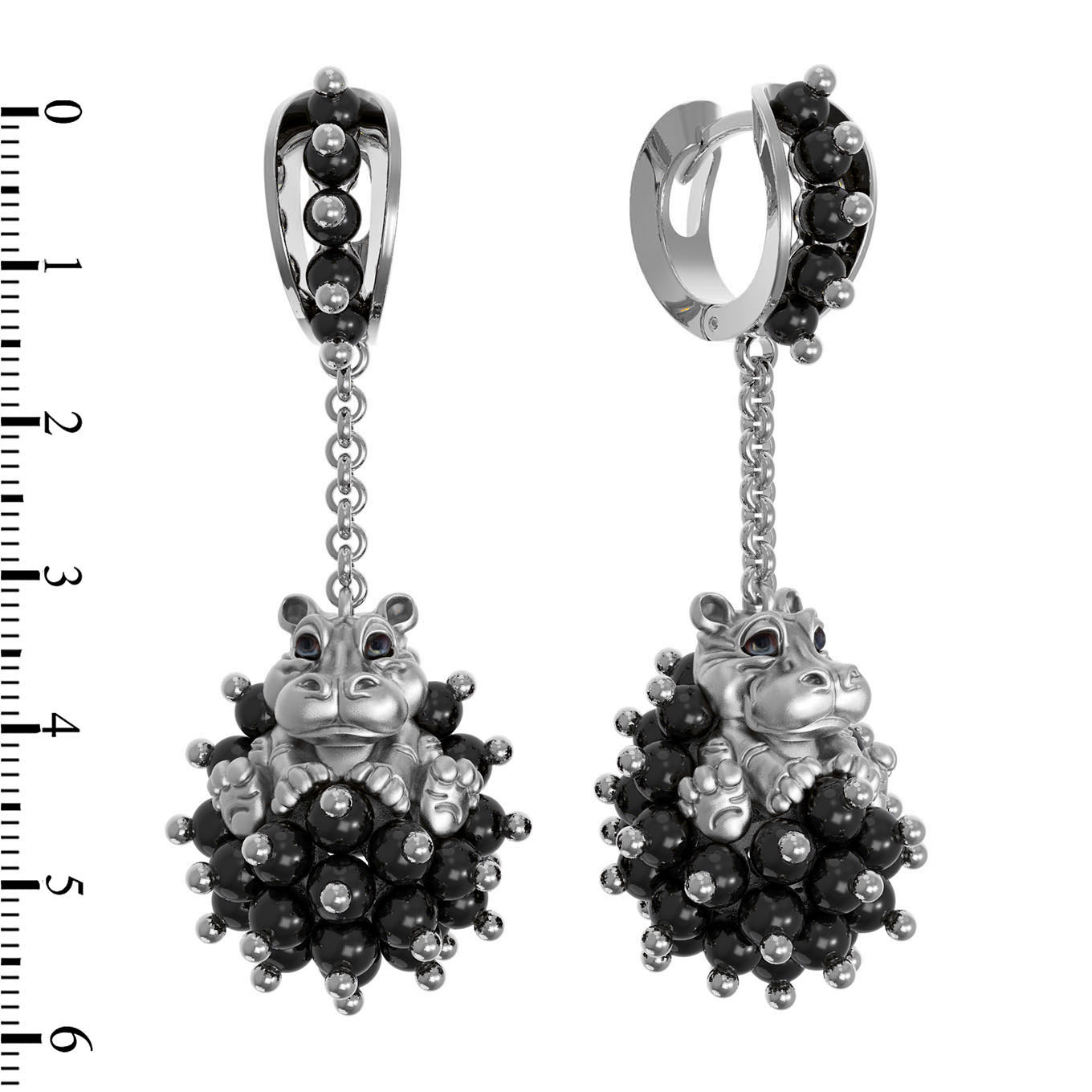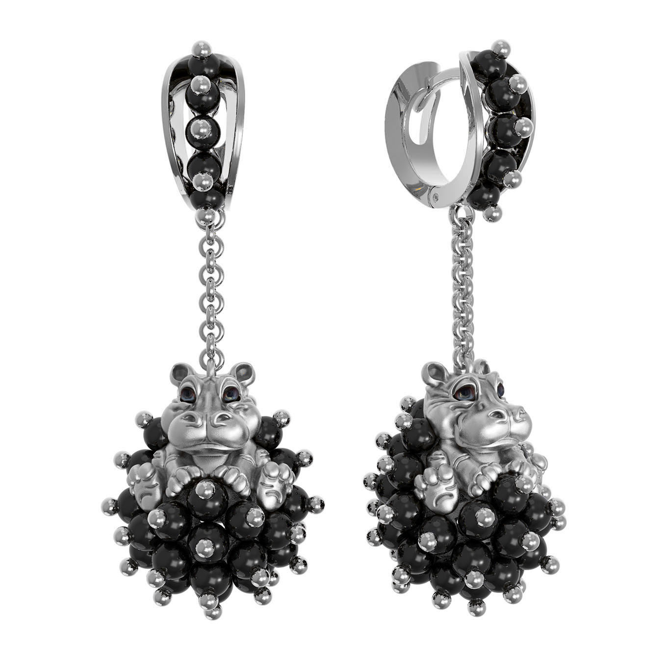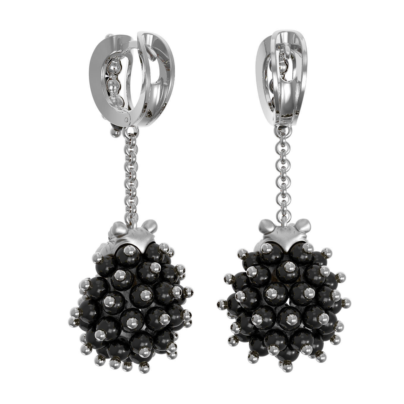 Серьги из белого золота c эмалью и ониксом
