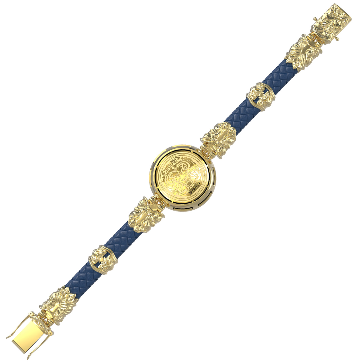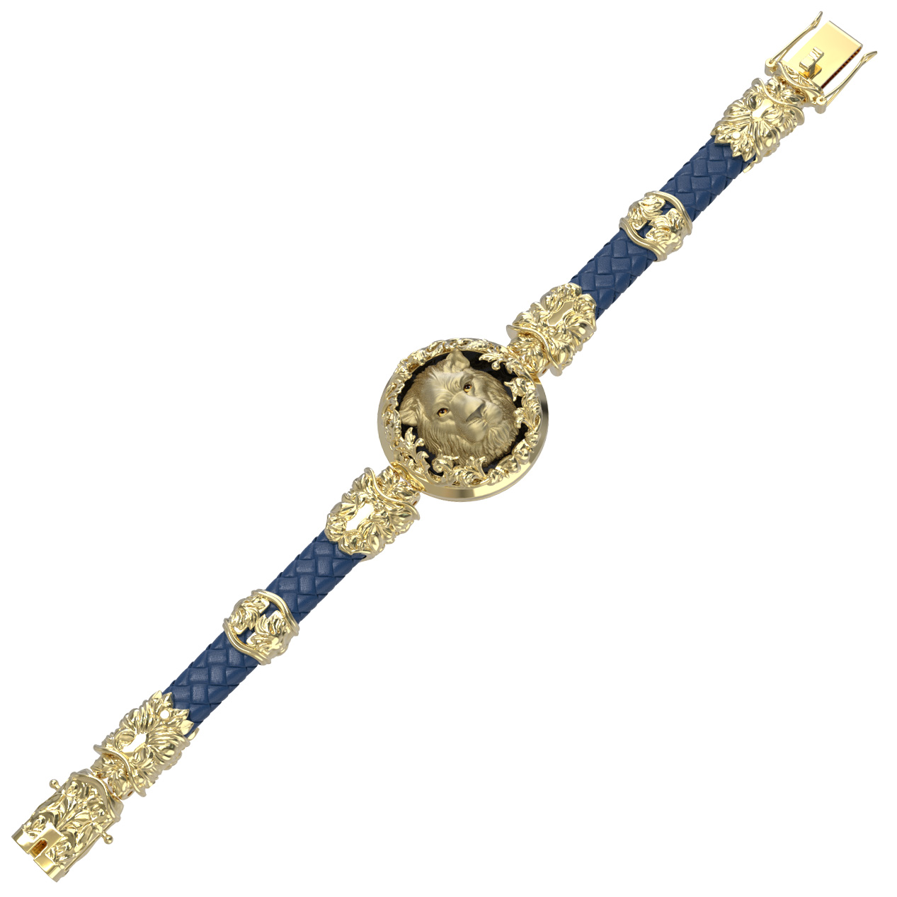 Браслет из лимонного золота c эмаль, кожаным шнурком и ониксом