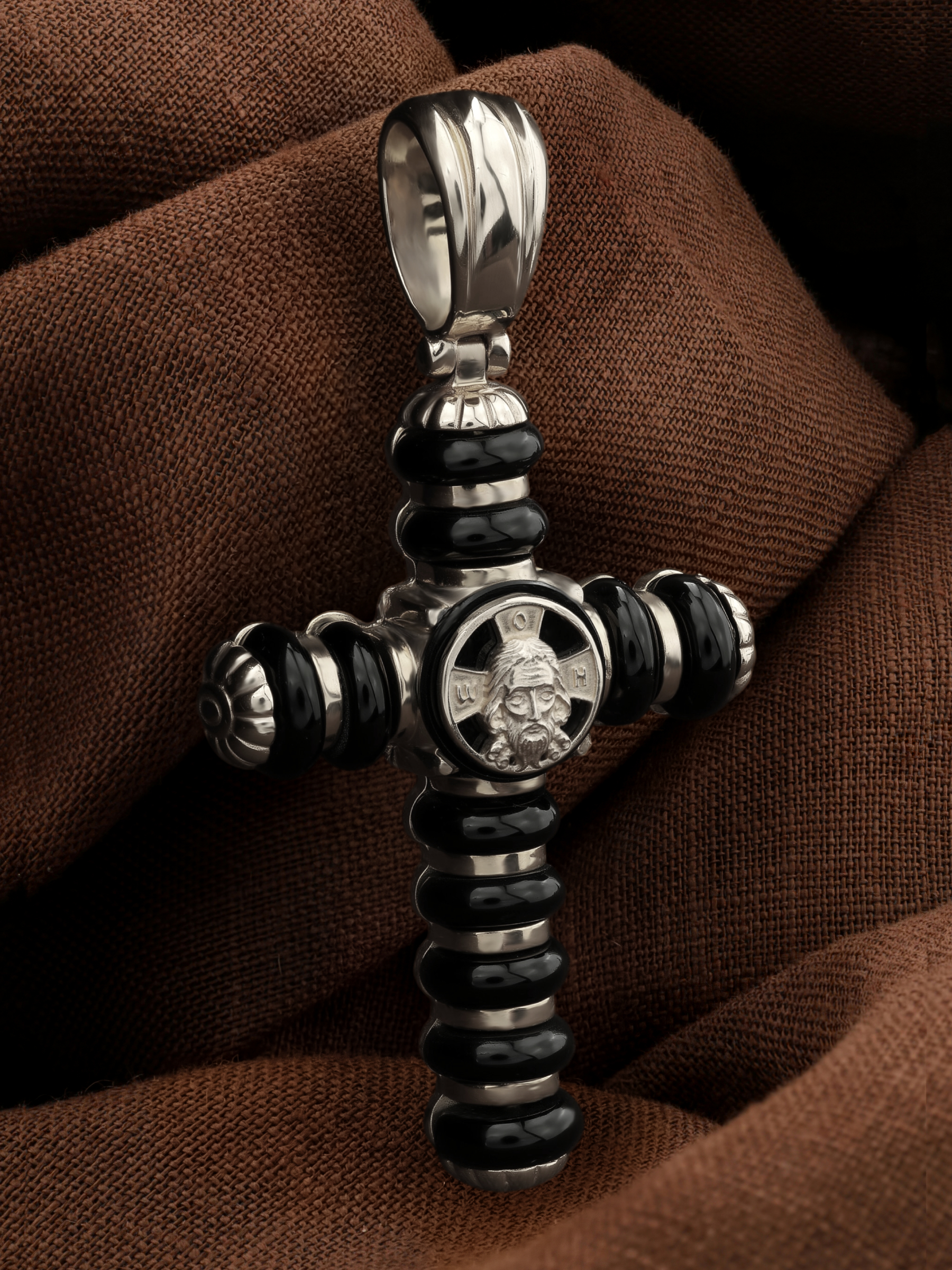 Крест из белого золота c ониксом