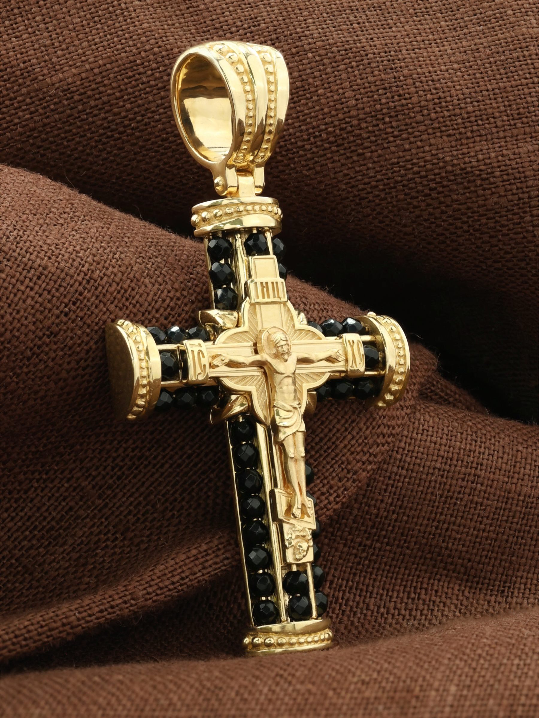 Крест из лимонного золота c ониксом