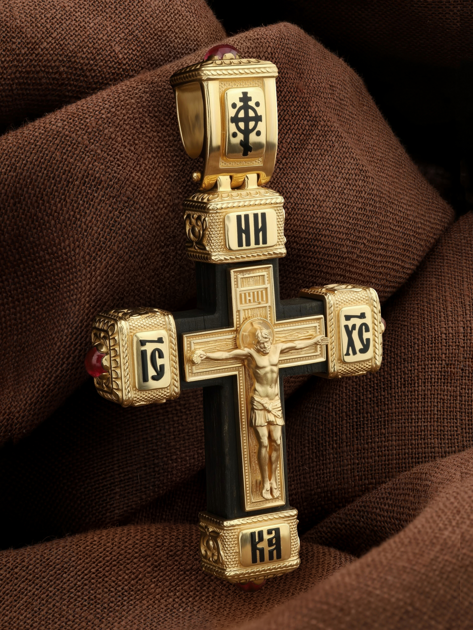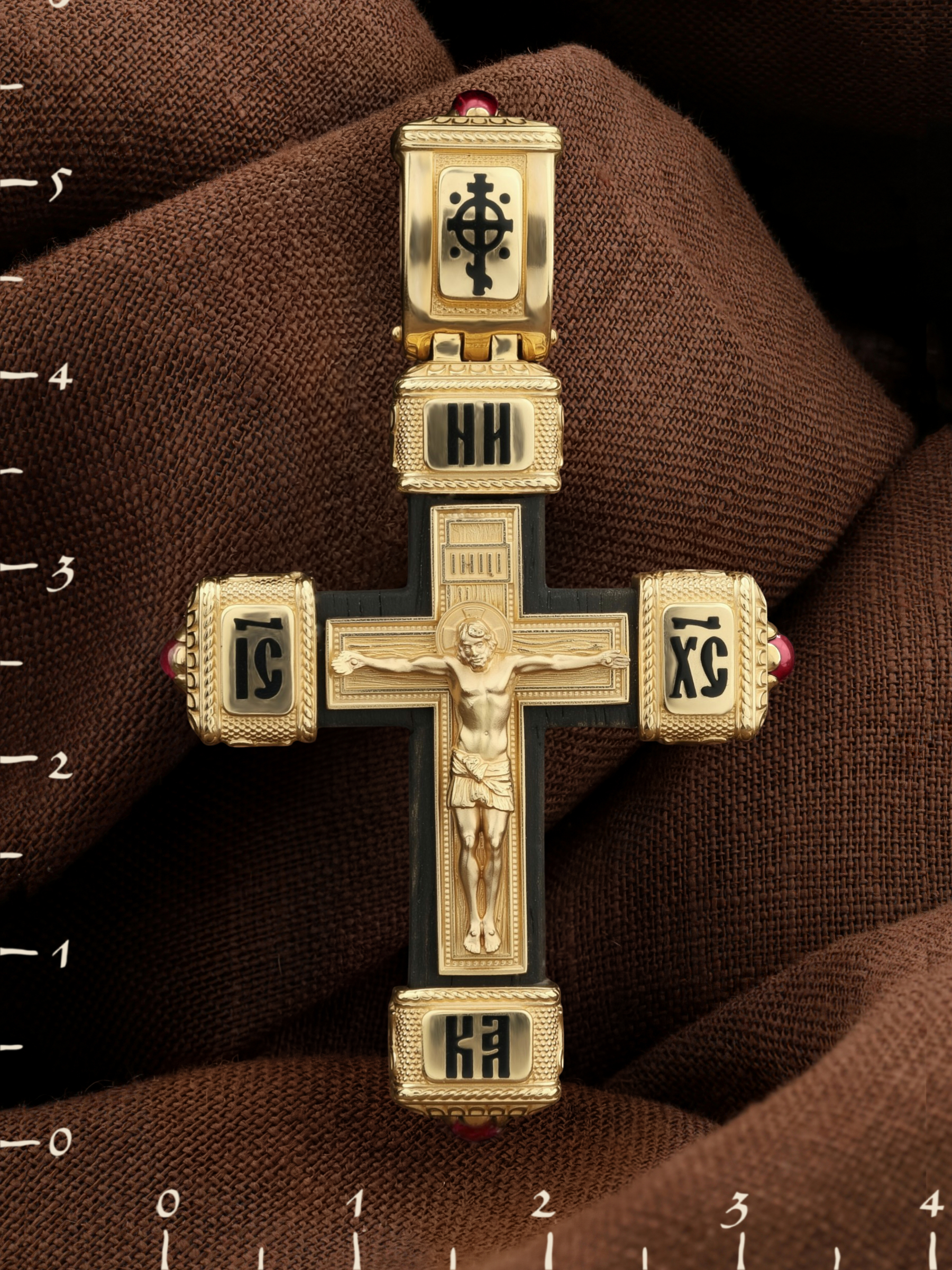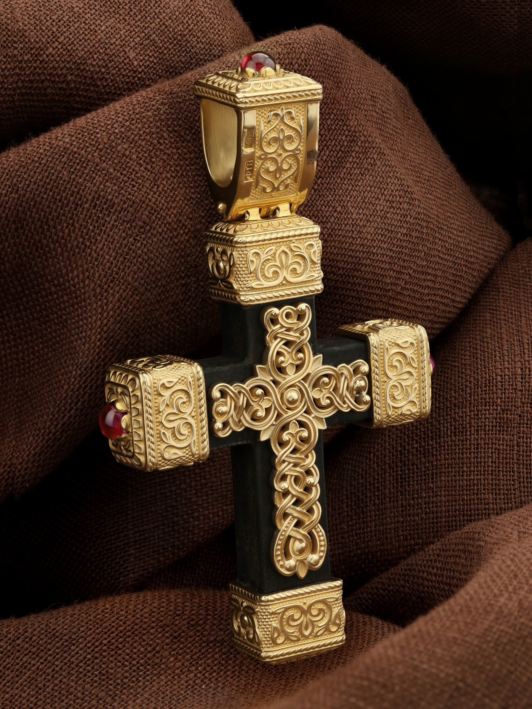 Крест из лимонного золота c эмаль, рубином и эбеновым деревом