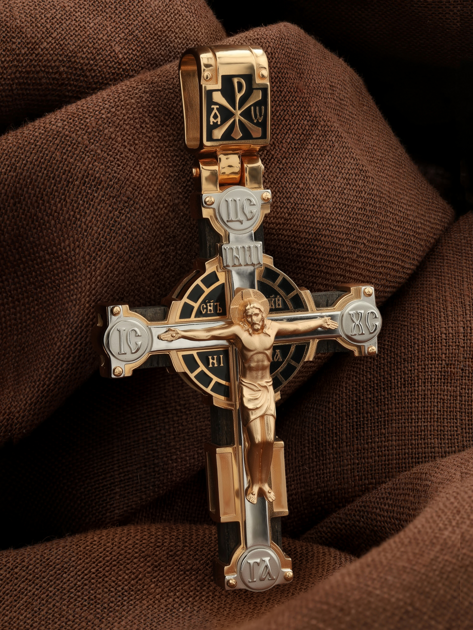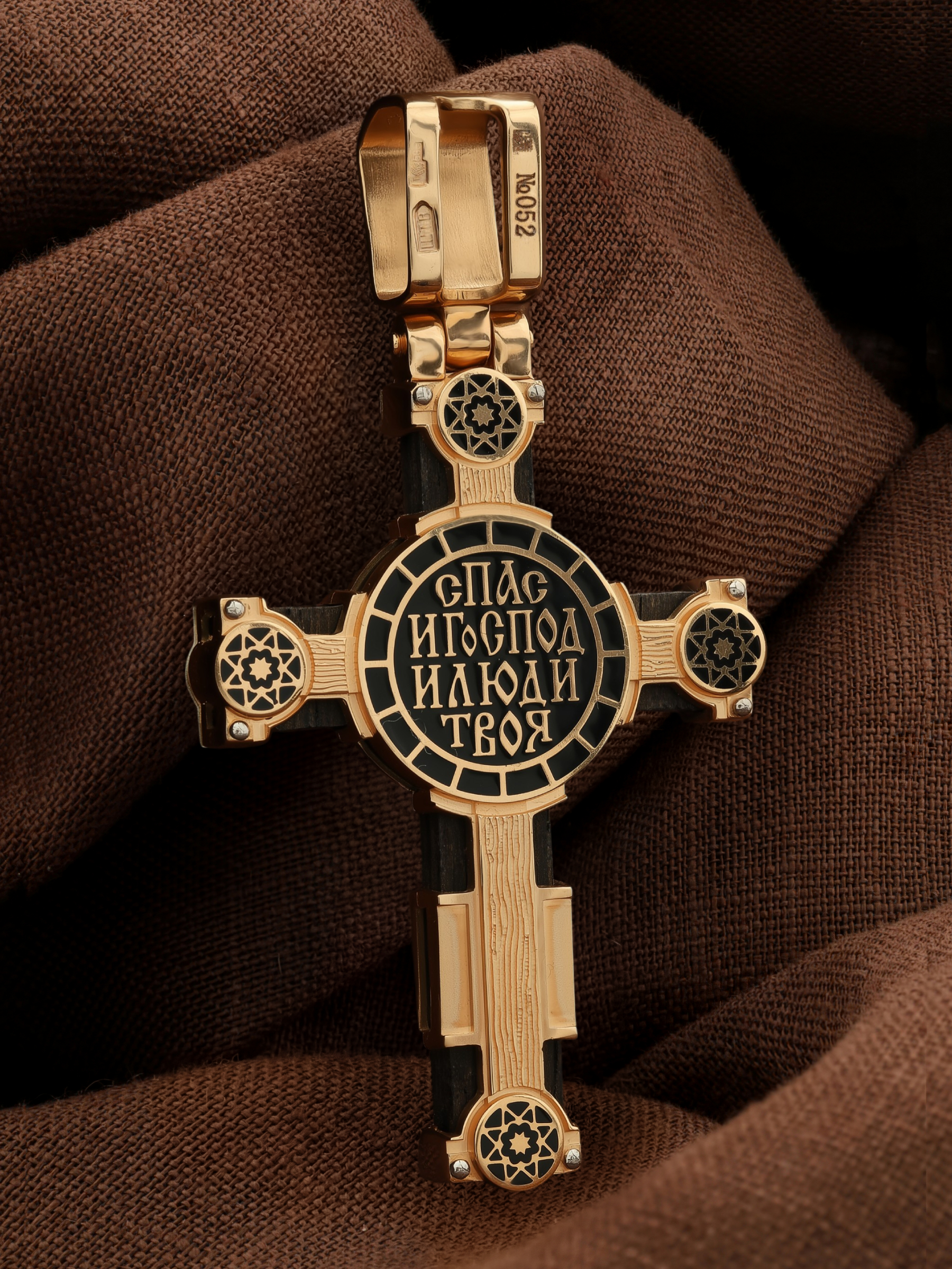 Крест из золота c эмаль и эбеновым деревом