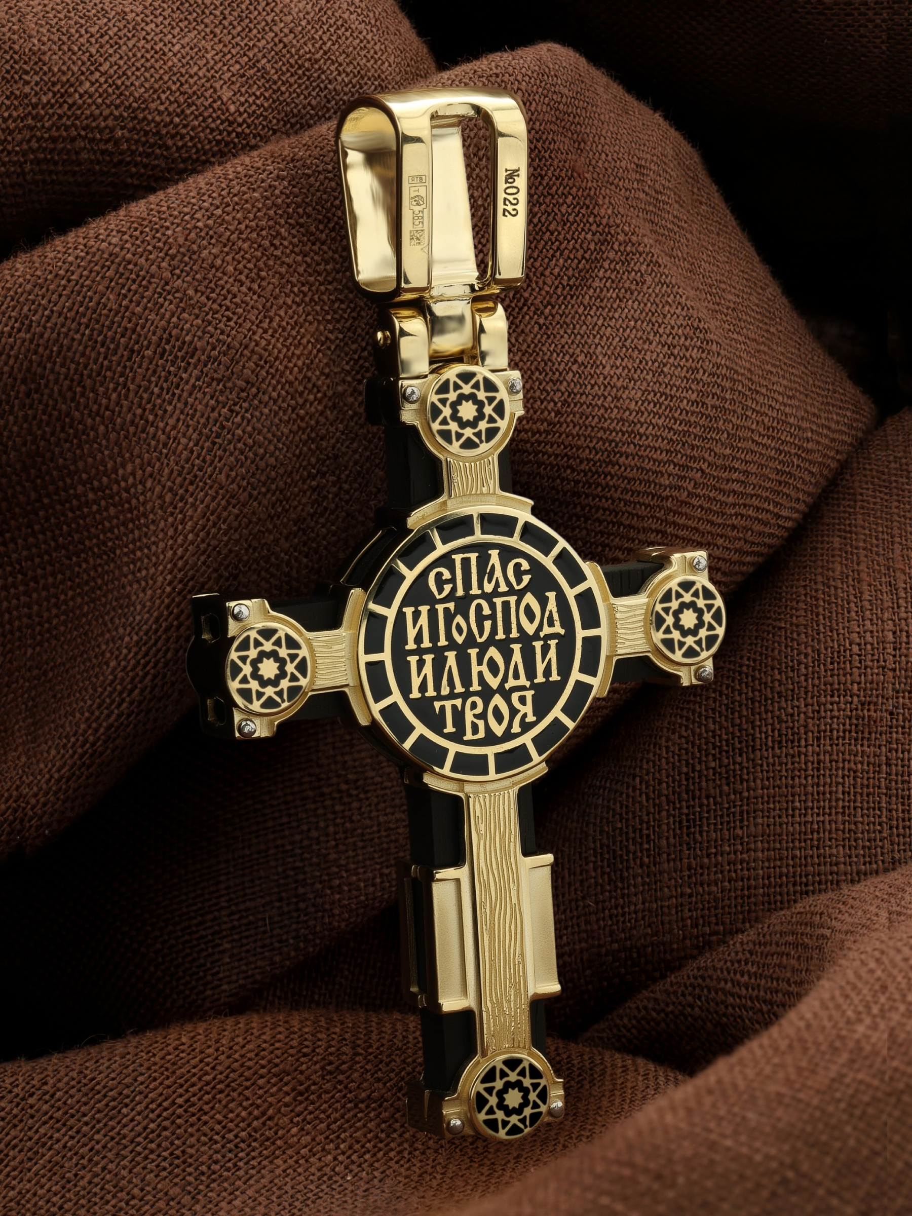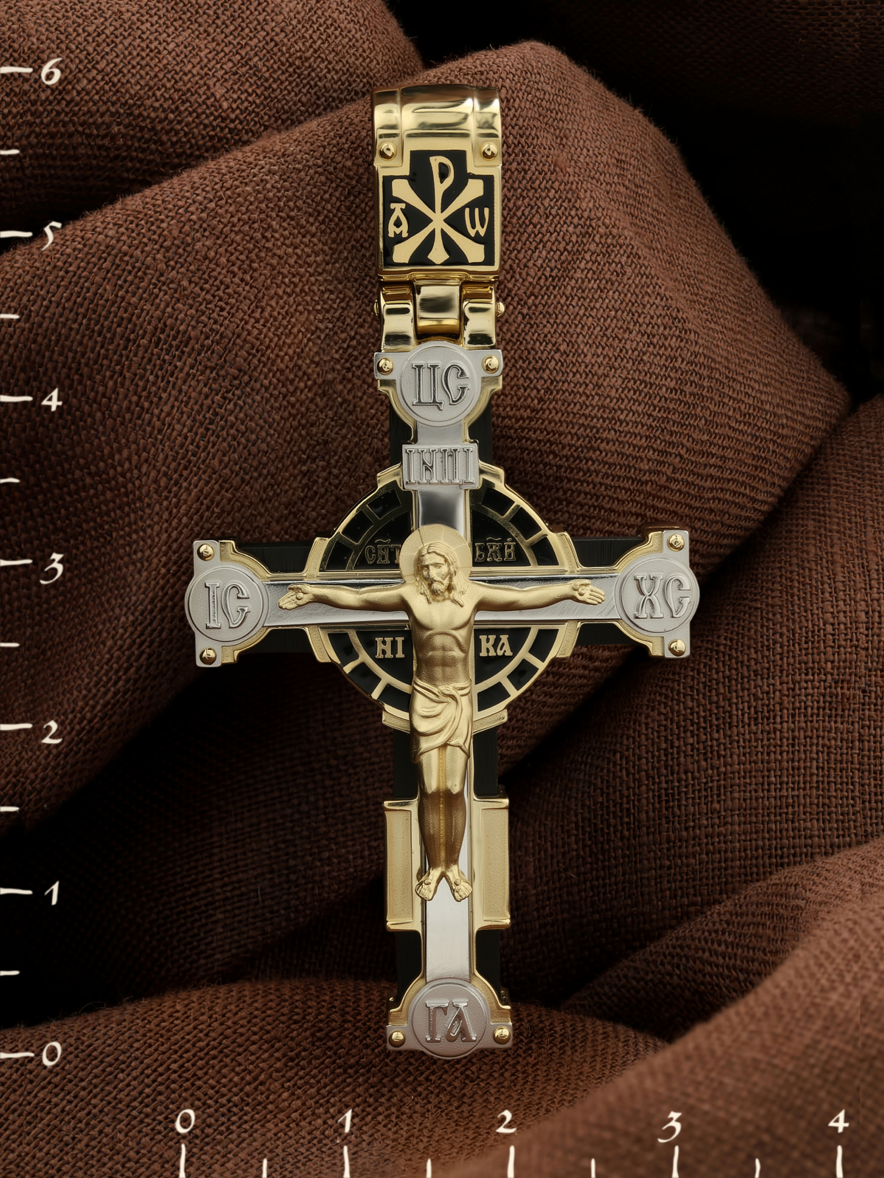Крест из лимонного золота c эмаль и эбеновым деревом
