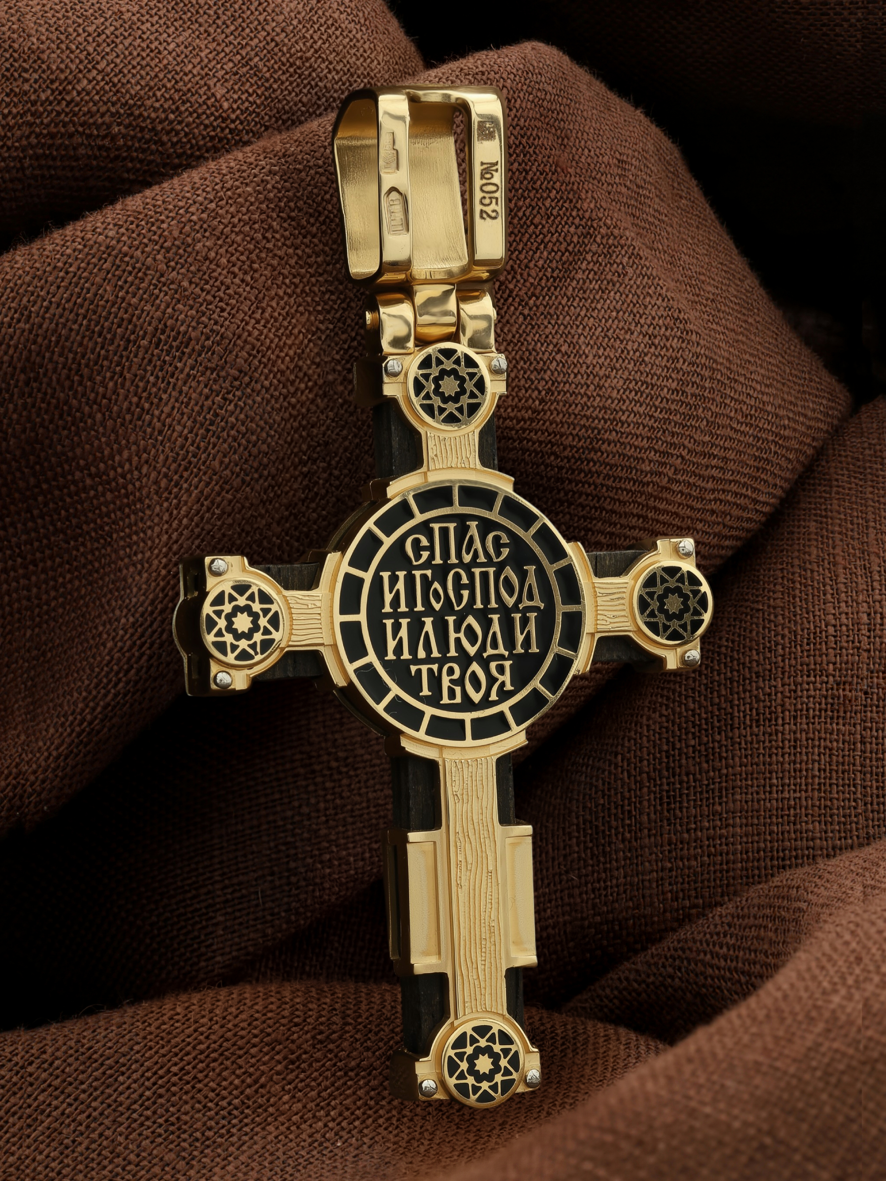 Крест из лимонного золота c эмаль и эбеновым деревом