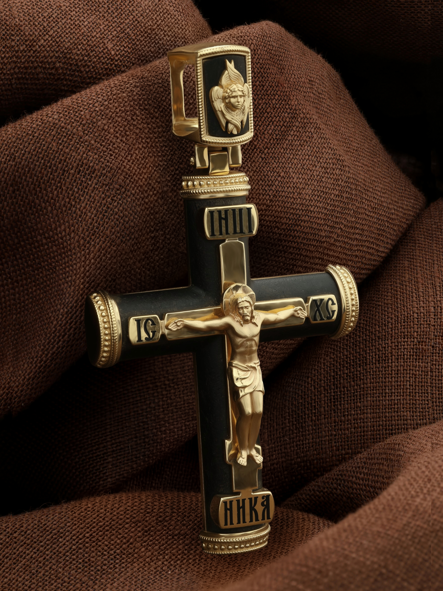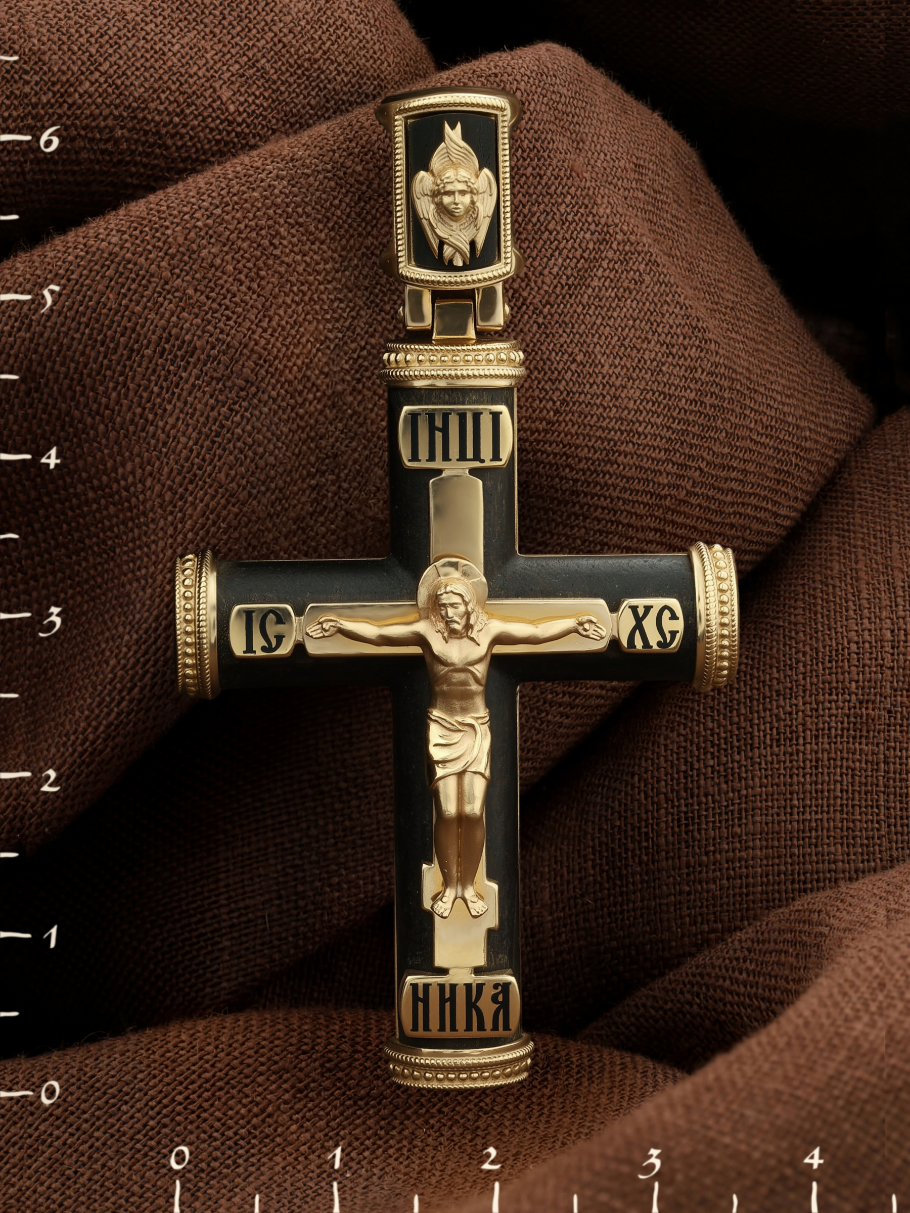 Крест из лимонного золота c эмаль и эбеновым деревом