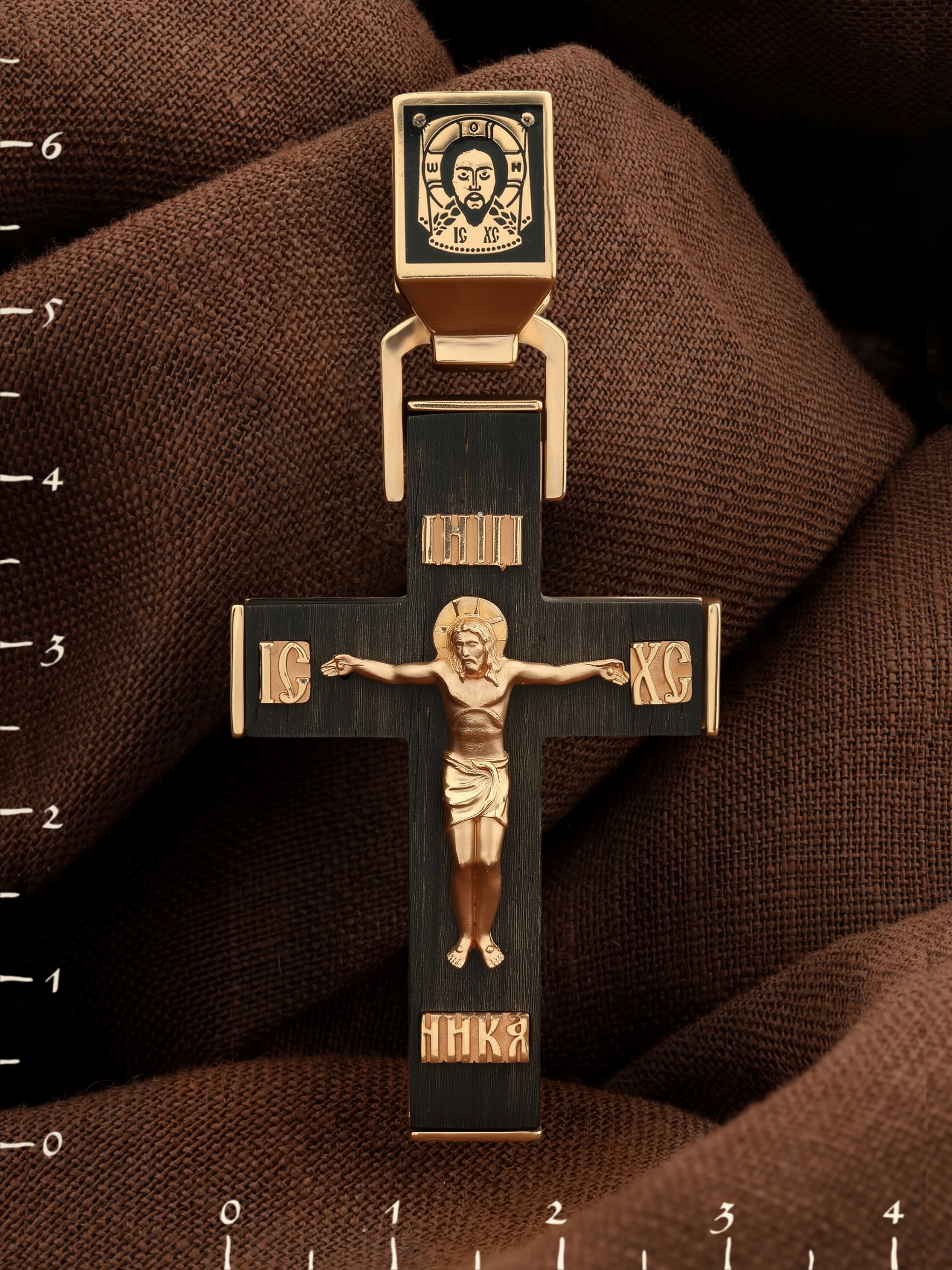 Крест из золота c эмаль и эбеновым деревом