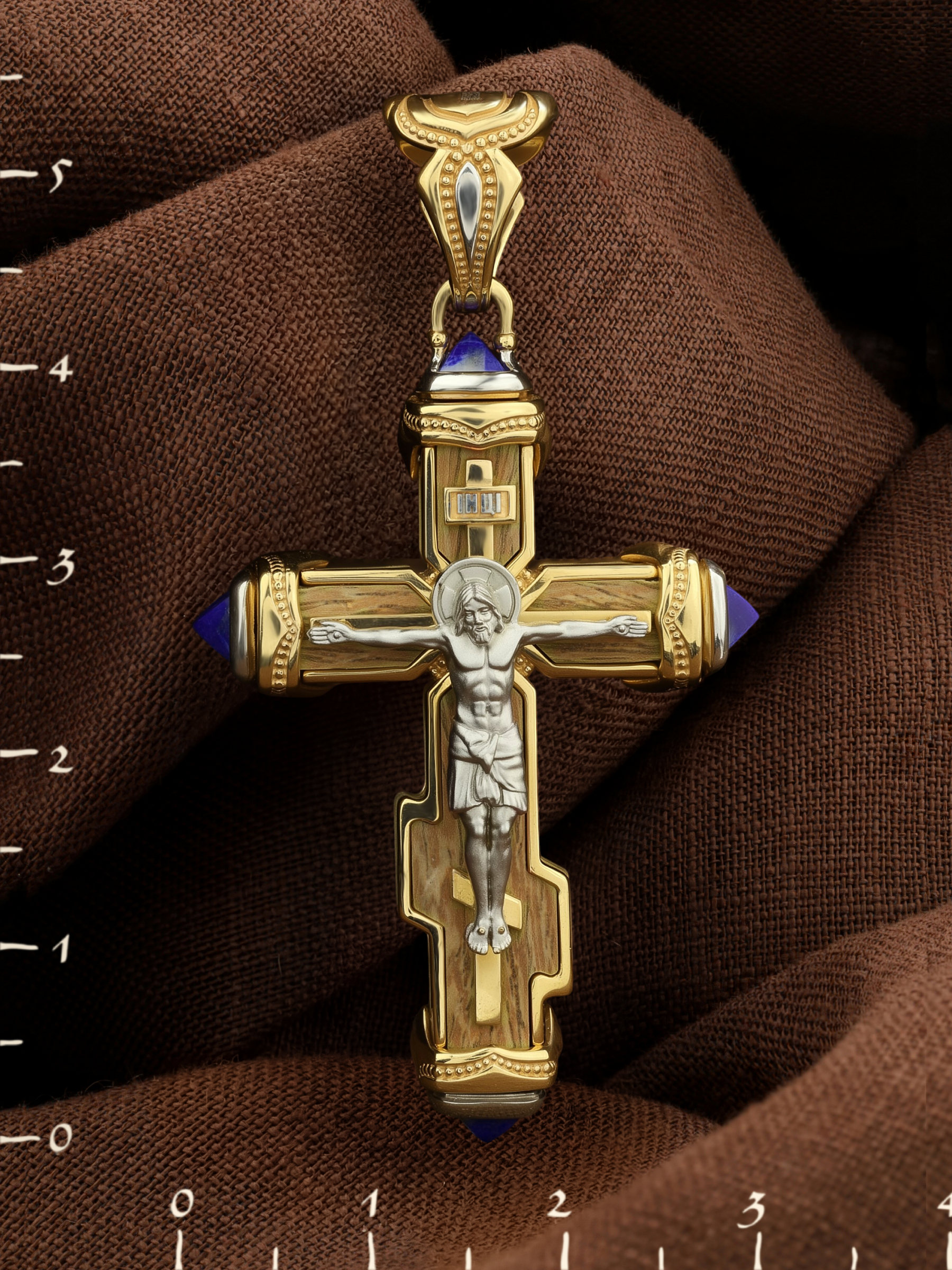 Крест из лимонного золота c лазуритом и железным деревом